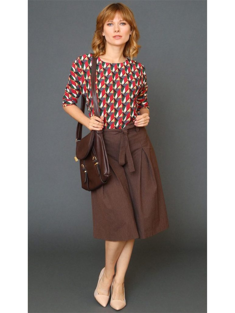 Les propriétaires de formes magnifiques doivent abandonner les modèles ornés de gros caractères. Des dessins similaires peuvent agrandir visuellement la figure. Pour ces filles, les jupes-culottes monophoniques à flèches ou à plis seront idéales.