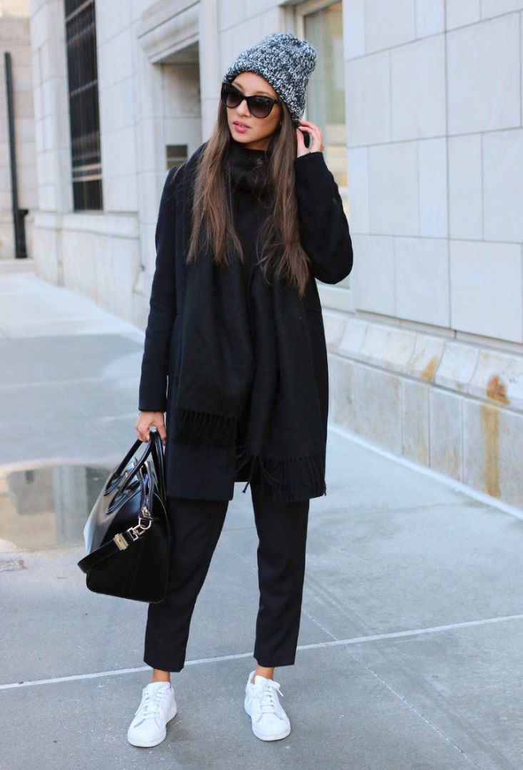 Pendant la saison froide, vous pouvez porter un pull ou un cardigan et des bottes. Ils ont l'air bien avec une couche d'une coupe ajustée de longueur moyenne. Mais avec ce qu'ils ne devraient pas être portés, c'est avec des vestes soufflées et des vestes en duvet. Cette combinaison vous rendra sans forme.