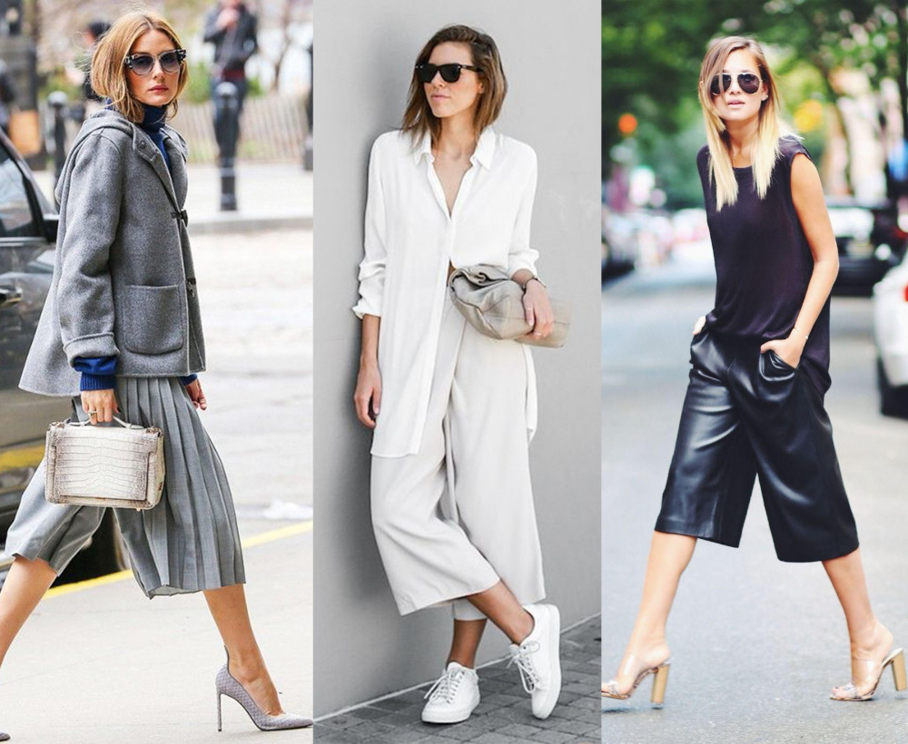 Les fashionistas élancées peuvent se permettre de larges culottes coupées droites de toutes les longueurs.