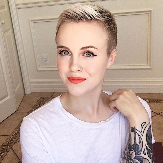 Néanmoins, les stylistes affirment que cette coupe de cheveux est très féminine et à la mode. Cela est particulièrement vrai pour les propriétaires de cheveux blonds. Les brunes qui recherchent de telles expériences devraient éclaircir légèrement leurs cheveux et leur donner un ton plus doux. Le fait est que sur les cheveux foncés, une telle coupe semble trop audacieuse et stricte.