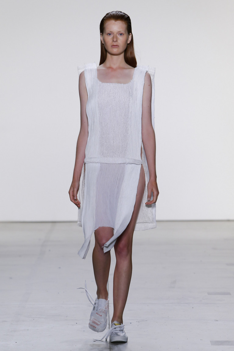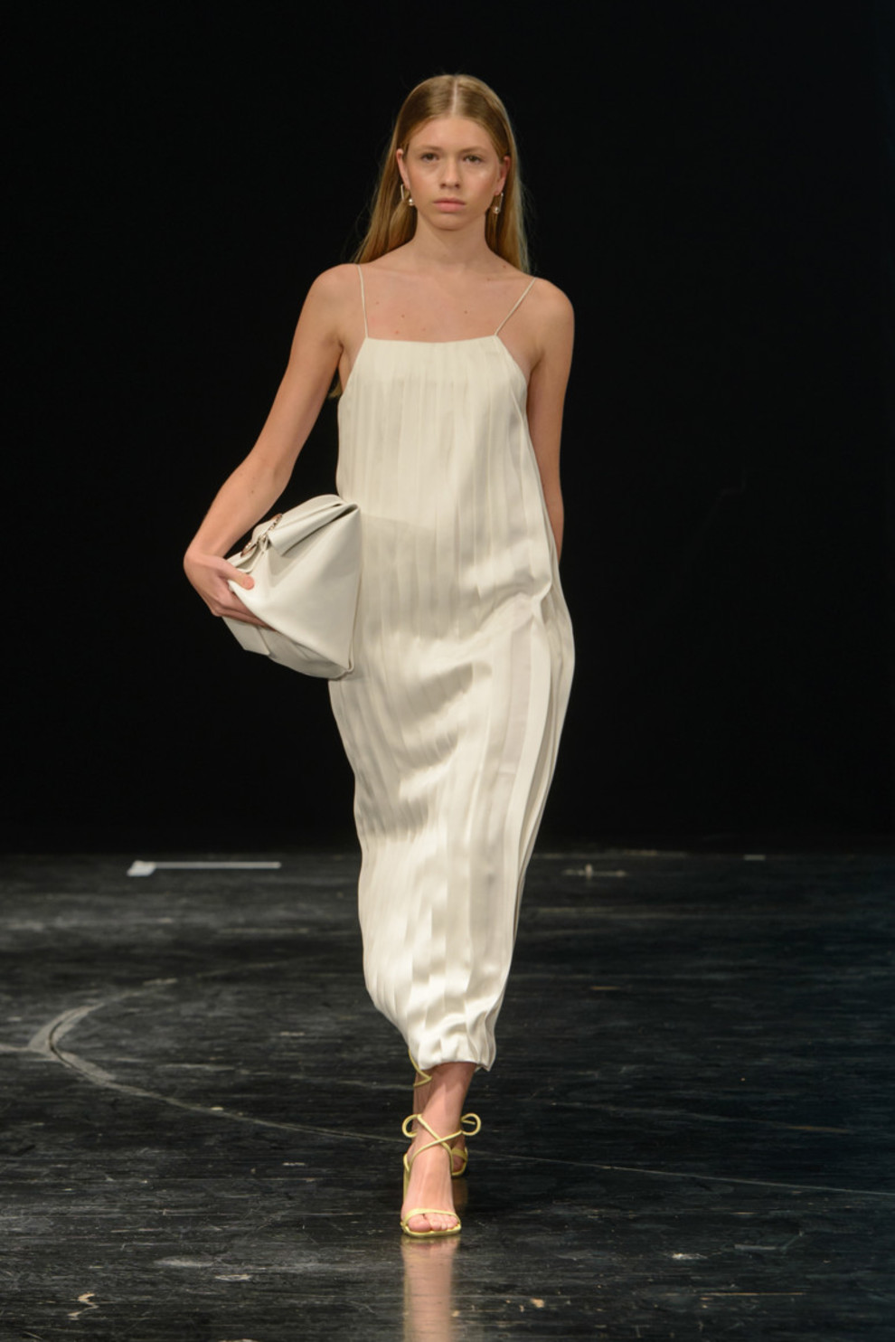 Le plaisir paradisiaque est un moment de caresse de la peau sous un soleil chaud! Une robe courte à fines bretelles n'est pas un obstacle. Les nuances blanches mettent parfaitement en valeur la peau bronzée. Et la masse de plis qui coule sur une robe d'été légère souligne la grâce d'une silhouette féminine. Le point culminant de la robe d'été en satin blanc de la marque DATUNA est une écharpe fluide du même tissu.Dans une version aussi romantique d'un sarafan d'été, de larges perspectives se dévoilent devant une femme! Le design inhabituel des robes d'été de la marque PARSONS THE NEW SCHOOL FOR DESIGN permet au tissu de se draper autour de la silhouette, soulignant ainsi les courbes sexy du corps féminin.