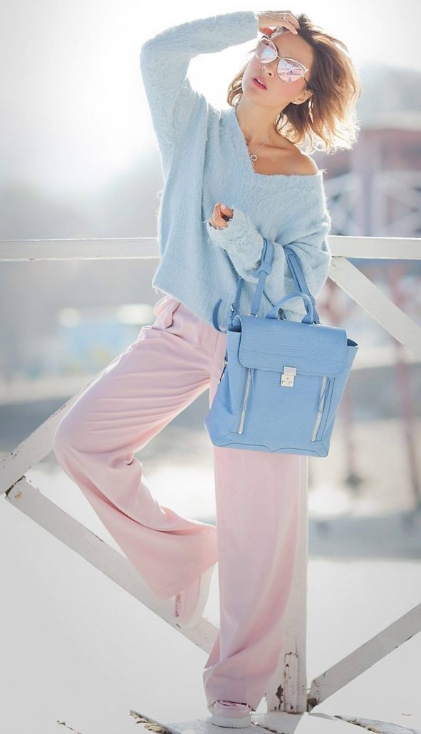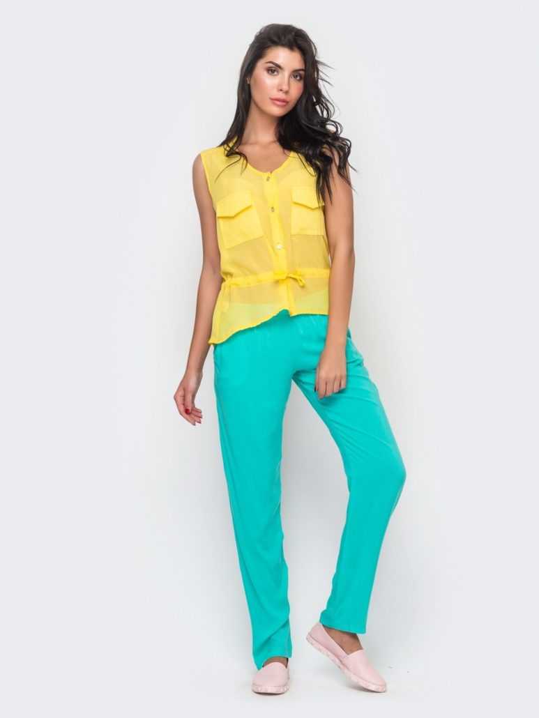 Dans l'image quotidienne du printemps-été 2026, les couleurs vives et printanières prévalent. Un pantalon de couleur pastel qui se marie bien avec un chemisier et un blazer a l'air frais.