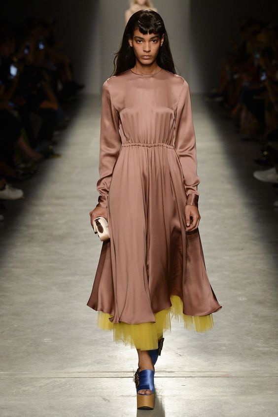 Dans leurs collections, de nombreux designers se concentrent sur la qualité du matériau. Nous vous proposons de ne pas rater ce moment et d'essayer des produits uniquement à partir de bons tissus. Par exemple, la mousseline de soie est maintenant au sommet de sa popularité. Cela n’a rien d’étonnant, car c’est pertinent à tout moment de l’année. Au printemps et en été, ces robes peuvent être portées avec des sandales ou des pantoufles élégantes. Et en automne-hiver, les stylistes proposent de les compléter avec des pulls volumineux. Grâce à cette combinaison inhabituelle, l'image est vraiment très élégante.