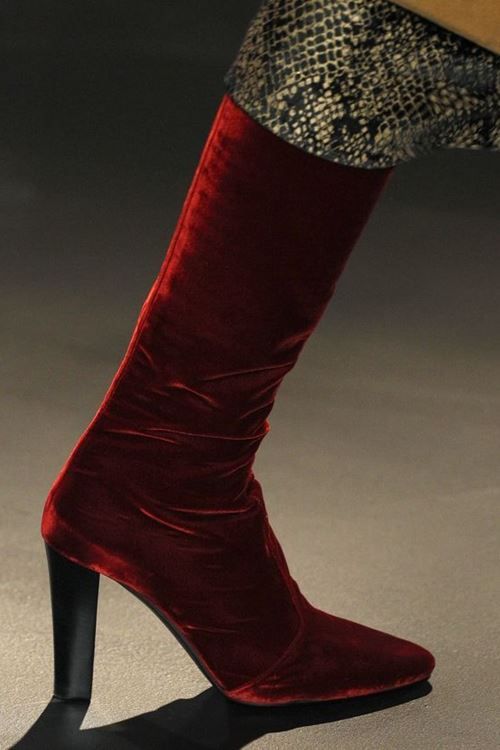 Malgré leur impraticabilité, les bottes de velours seront les plus en vogue pendant la saison froide. En raison de sa texture inhabituelle, un tel matériau semble très coûteux et d’une beauté incroyable. Par conséquent, ces chaussures sont parfaits même pour assister à des occasions spéciales.