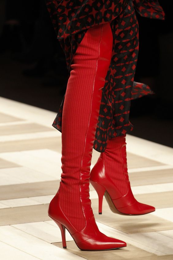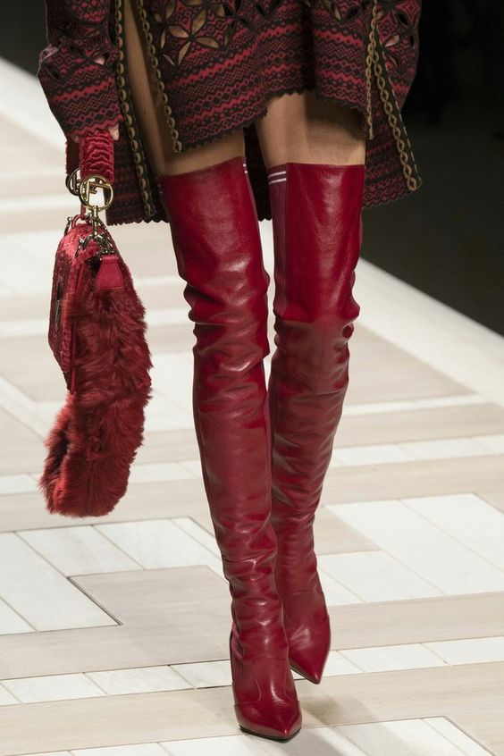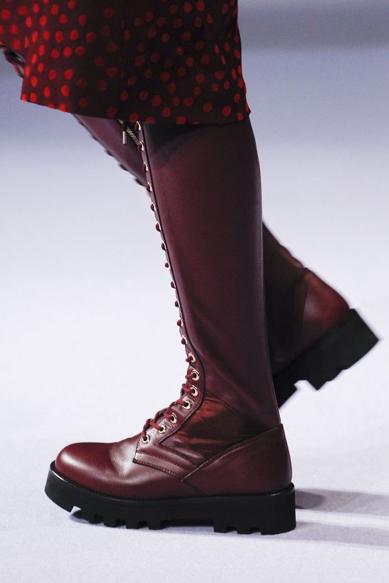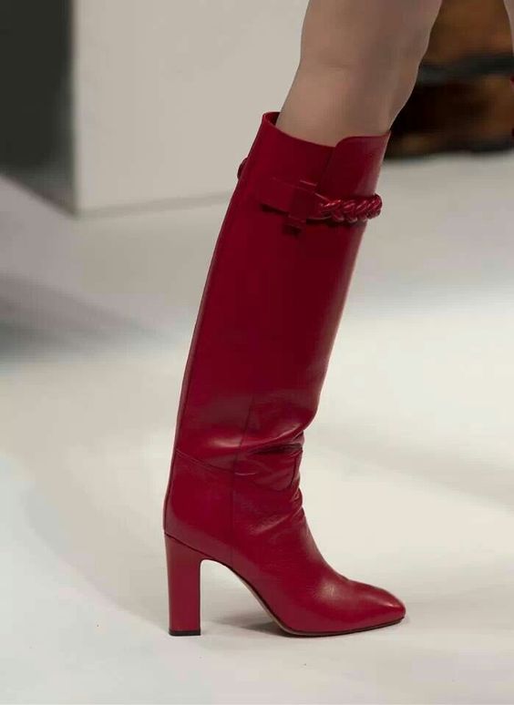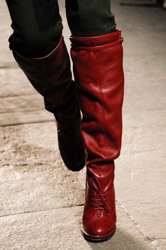 Pendant la saison froide, les bottes dans une grande variété de nuances de rouge sont particulièrement populaires. Il peut s'agir de tons plus sombres ou plus clairs. Nous vous recommandons de porter une attention particulière aux chaussures en bordeaux et rouge classique. On pense qu'ils sont les plus polyvalents et qu'ils se combinent le mieux avec différentes choses.