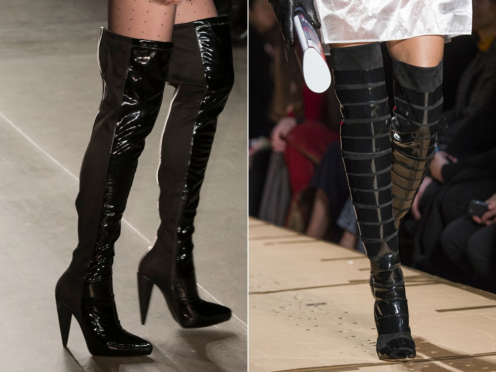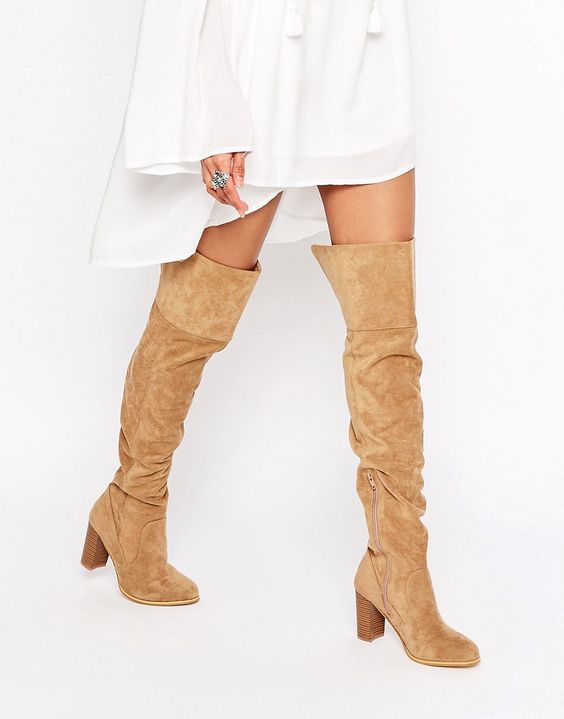 Pendant plusieurs saisons consécutives, les bottes à large sommet ne sont pas démodées. En raison d'un tel détail, ils ont l'air très inhabituel. Néanmoins, ils vont bien avec les robes et les pantalons skinny. Par conséquent, expérimentez hardiment en créant des images élégantes.