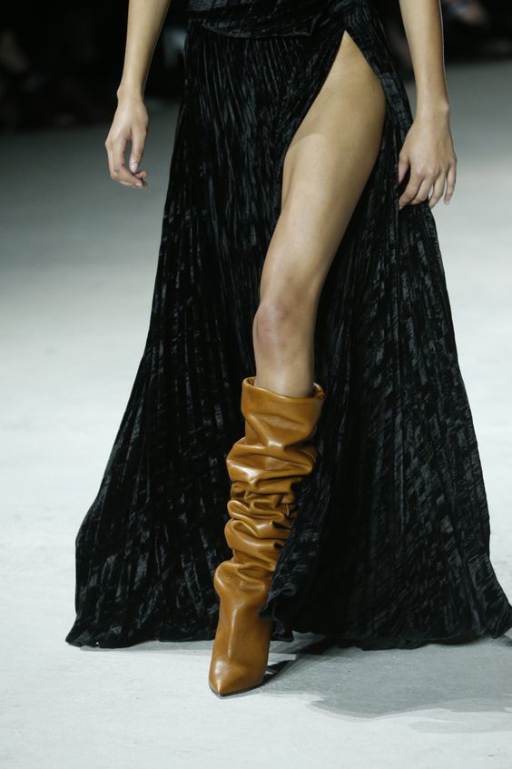 Pendant plusieurs saisons consécutives, la véritable tendance est de chausser des bottes. Contrairement aux autres options, elles ont l’air très féminines et même sexy. Mais cela dépend de la taille de la jambe. Nous vous recommandons de choisir des modèles avec une dentelle pour la fixation. De cette façon, vous pouvez ajuster votre tension vous-même.