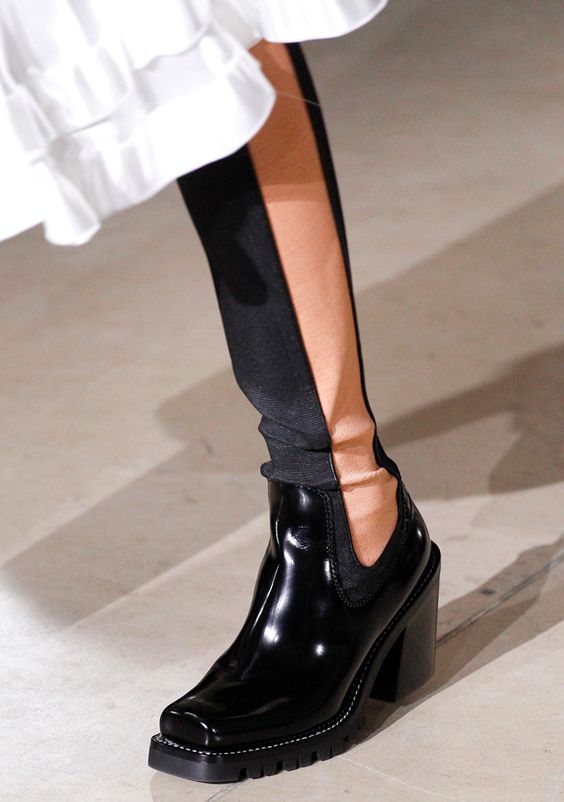 Malgré la popularité des bottes à talons aiguilles fines, les concepteurs ont présenté une grande variété d'options pour les chaussures à talons stables. Parmi eux se trouvaient non seulement des talons classiques, mais aussi des formes plus inhabituelles. Cette tendance a rapidement séduit les fashionistas modernes. Après tout, ce n’est pas seulement pratique, mais aussi magnifique.