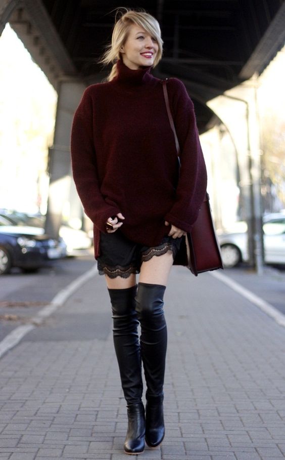 Cependant, en choisissant des bottes, vous devez bien comprendre comment vous allez les combiner. Après tout, l'image ne doit en aucun cas être vulgaire. Les stylistes suggèrent de combiner ces bottes avec des jupes, des robes au genou ou une longueur midi. Ils ont également fière allure avec des pantalons skinny.