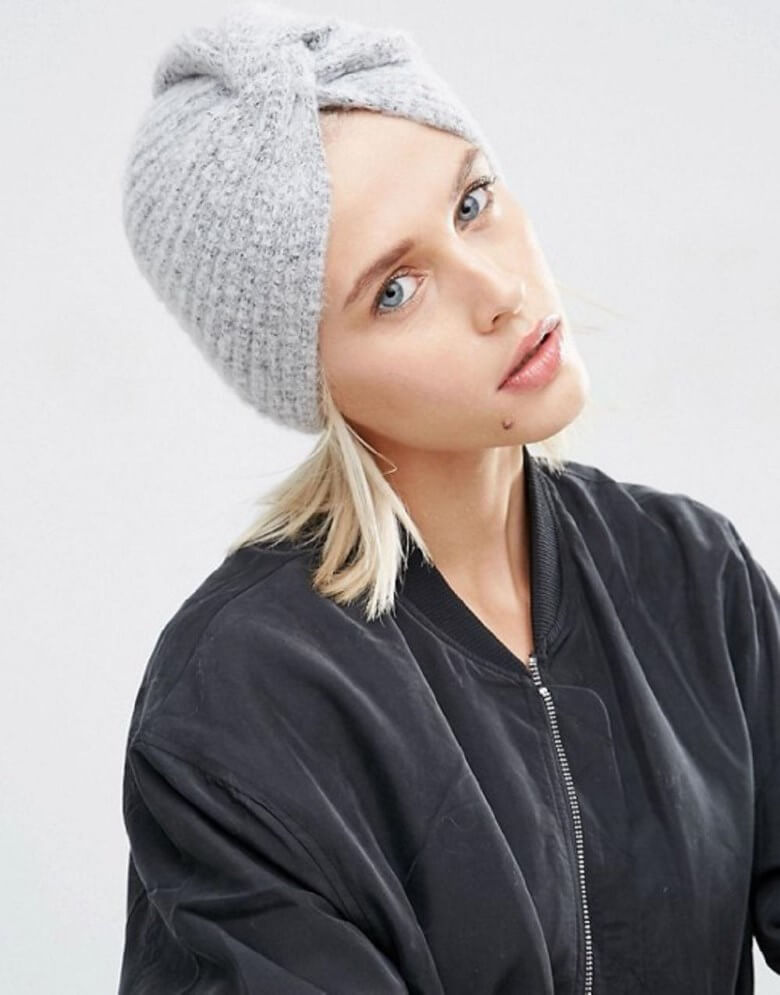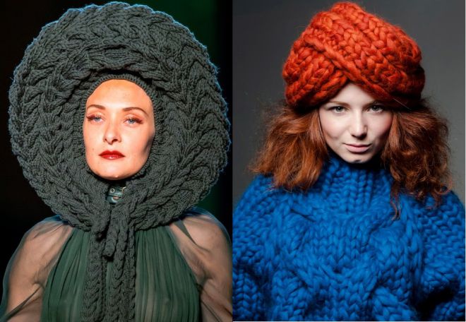 Un tel modèle, ressemblant à un turban oriental, est apparu sur les podiums il y a plusieurs saisons. Ils ne perdront pas leur pertinence au cours de la prochaine année. Du fait qu’une telle casquette épouse parfaitement votre tête, elle sera toujours chaleureuse et confortable. Parmi les options populaires pour le turban, vous pouvez distinguer des objets sombres avec un grand décor (broche, broderie, dentelles, etc.).