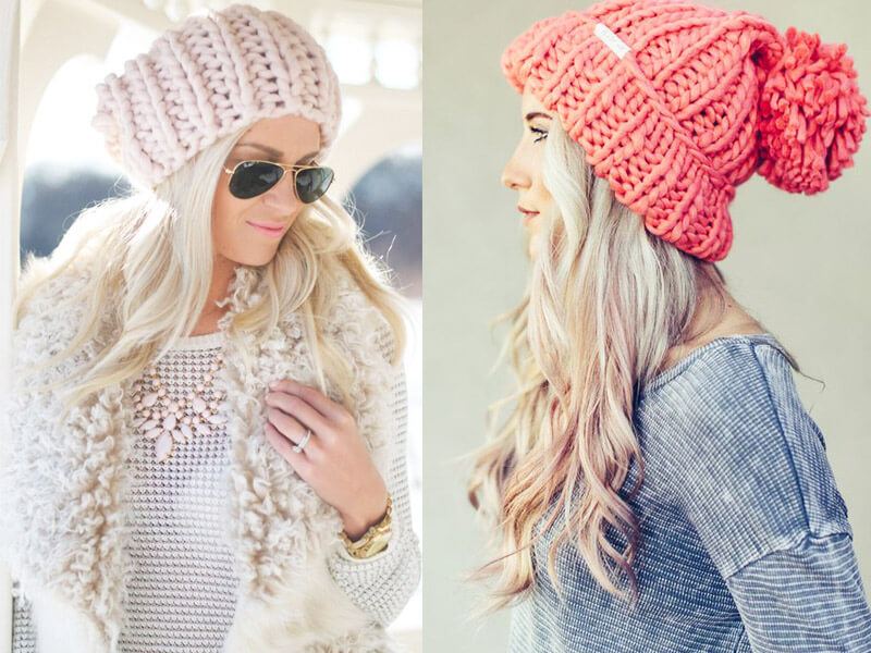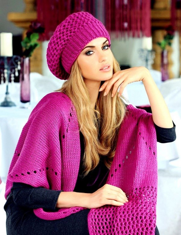 Parmi les modèles de tricot les plus populaires, il est nécessaire de distinguer les grands chapeaux tricotés avec un pompon. Leurs couleurs peuvent être absolument n'importe quoi: du noir et blanc universel au brillant et accrocheur (bleu, framboise, émeraude).