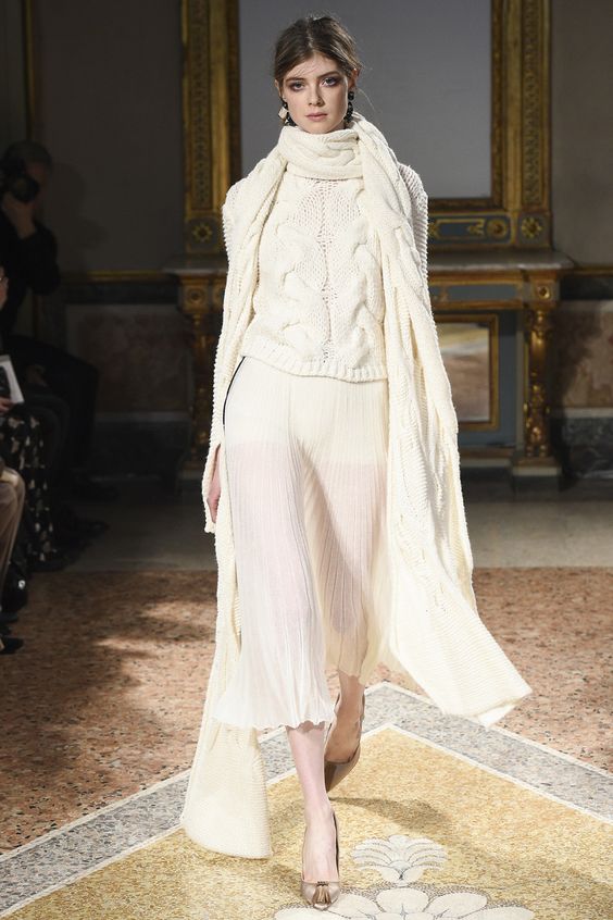 La nouveauté de la saison automne-hiver est une manche en foulard. Une caractéristique d'une telle écharpe est sa coupe. En réalité, on dirait que les manches d’un pull tricoté sont cousues ensemble.