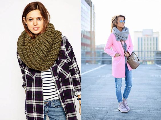 Un tel produit semble plutôt inhabituel, de sorte que toutes les filles ne peuvent pas le combiner correctement. Les stylistes recommandent de porter des robes et des jeans ou des pantalons de costume. Mais comme vêtement de dessus, le plus avantageux avec un tel foulard est un élégant manteau ou une veste.