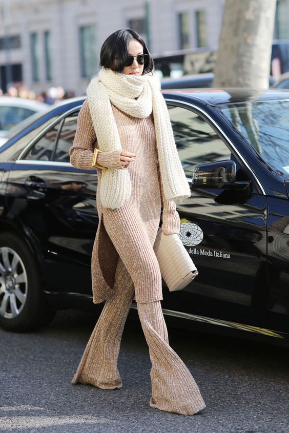 Malgré toute la variété des foulards, ce sont les produits tricotés qui occupent toujours une place de choix. Ils sont très élégants et volumineux, donc tout le monde les choisit, peu importe son âge. En fonction de la longueur du foulard et du tricot, vous pouvez le combiner à la fois au look de tous les jours et à de somptueux manteaux de fourrure.