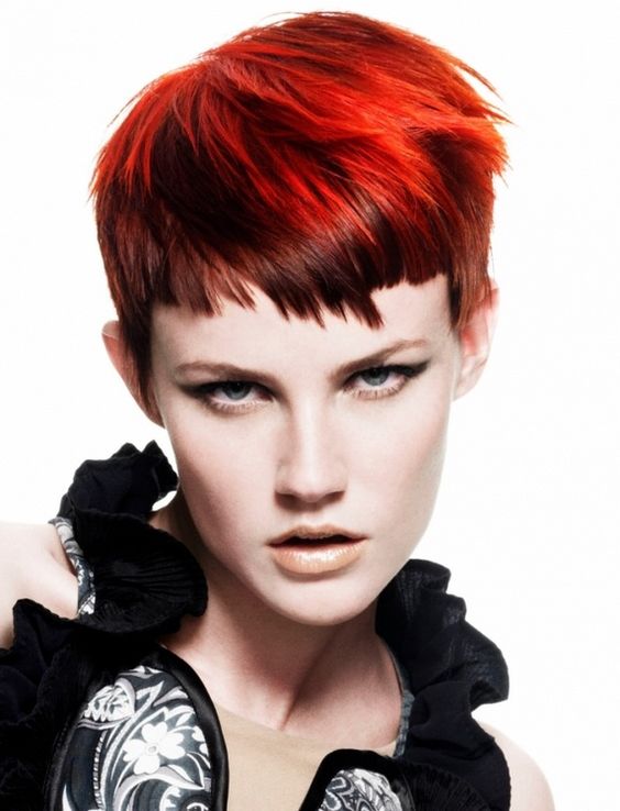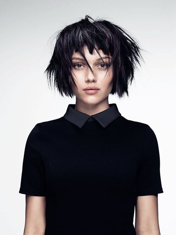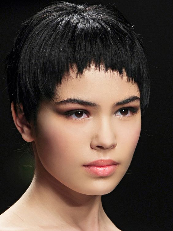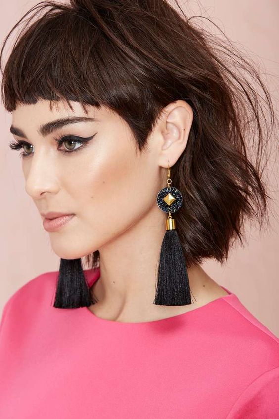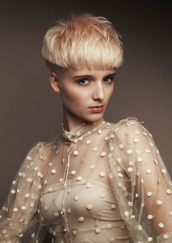 Une coupe de cheveux de lutin audacieuse et audacieuse est un excellent choix pour les fashionistas confiantes. Malgré le fait que cette option suppose une longueur de cheveux courte, une frange sera toujours appropriée. Cependant, il devrait avoir la même longueur que le reste des cheveux.