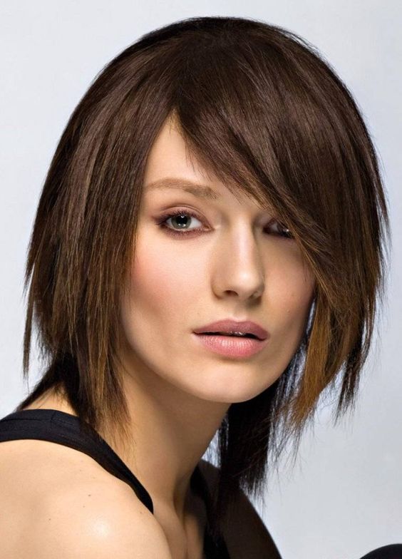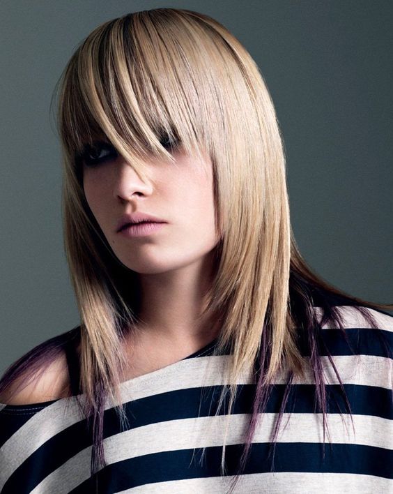 La frange oblique n'a pas perdu de sa pertinence depuis plusieurs années. Ce n'est pas étonnant, car c'est elle qui est reconnue comme la plus universelle. Contrairement aux autres options, ce sont les franges obliques qui conviennent à tout le monde, quels que soient l’âge et la forme du visage. Il est simplement nécessaire de choisir l'angle de coupe et la longueur de coupe les plus appropriés.
