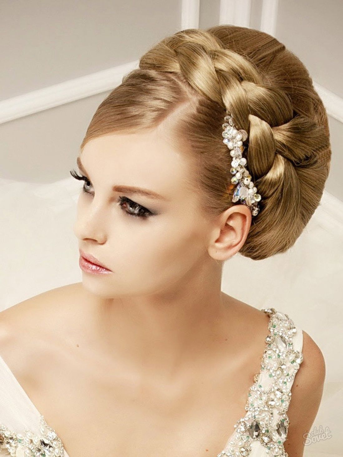 La coiffure tire son nom de la ressemblance extérieure avec une coquille. Vous pouvez le décorer avec des perles, qui peuvent également être ajoutées au bouquet de la mariée.
