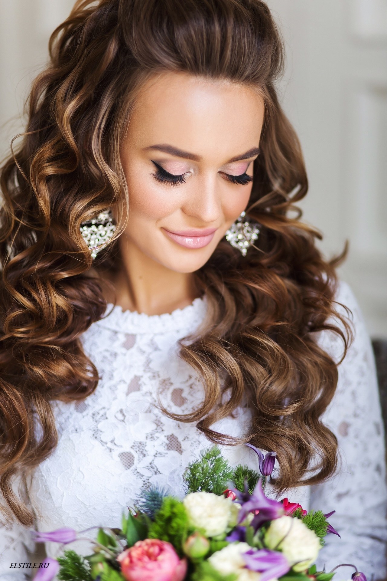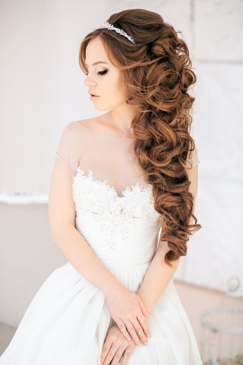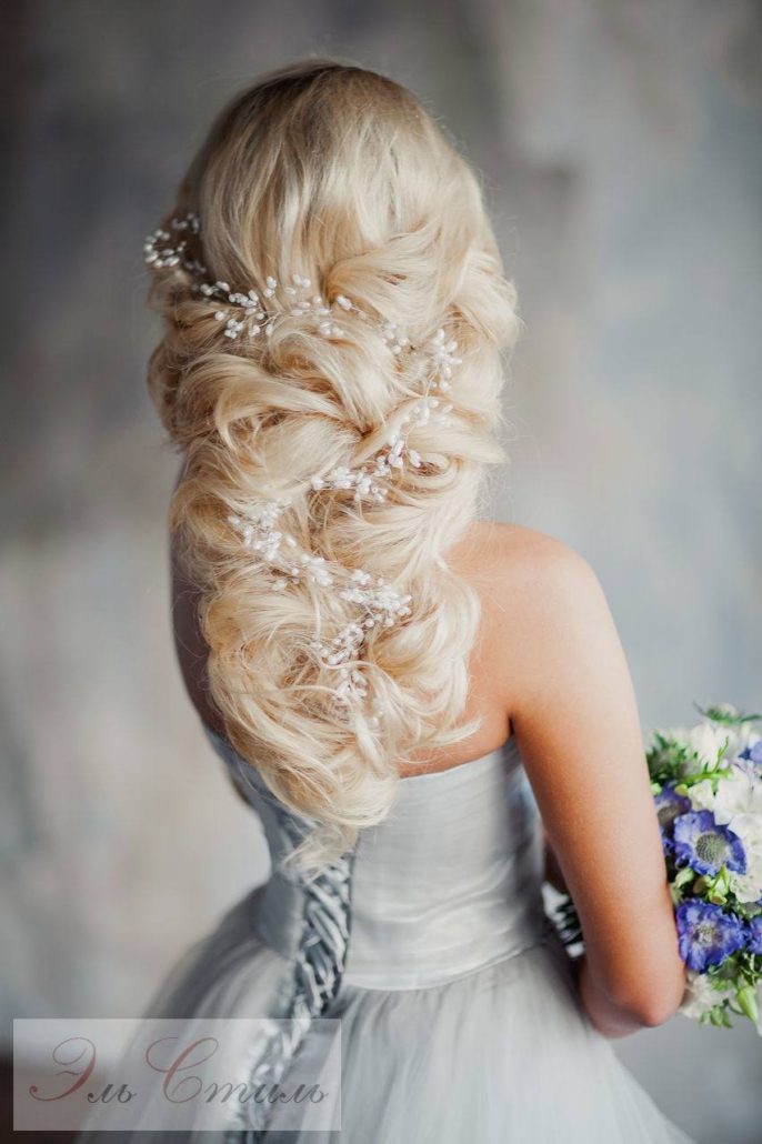 La mariée aux cheveux longs était plus chanceuse que quiconque, car le choix des options de coiffure de mariage pour eux était presque illimité. Quiconque ne veut pas s'embarrasser d'une coupe de cheveux peut simplement tordre les extrémités, laissant les cheveux lâches. Cependant, dans ce cas, il est important que les cheveux soient bien coiffés. Par conséquent, quelques semaines avant la célébration, les coiffeurs recommandent un programme complet de soins capillaires.
