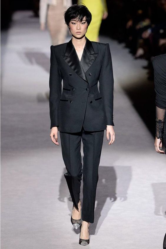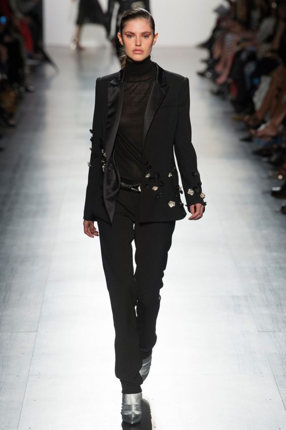 Le noir profond n’est pas la première année parmi les plus en vogue. C'est assez universel, basique, donc ça convient absolument à tout le monde. Le plus souvent, les créateurs l'ont choisi pour créer des vestes, des costumes et des robes. Nous vous recommandons de regarder de plus près ces éléments de la garde-robe.