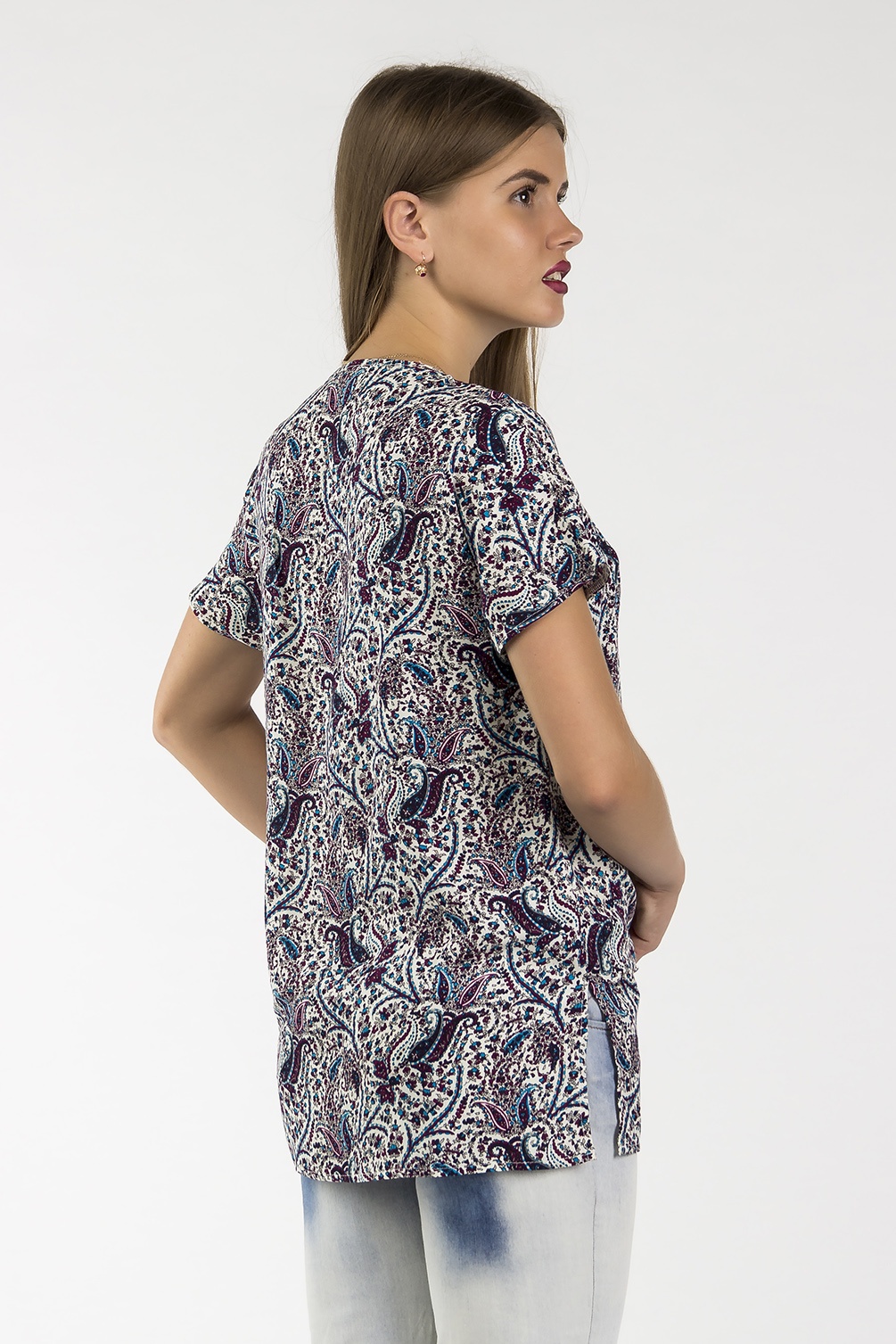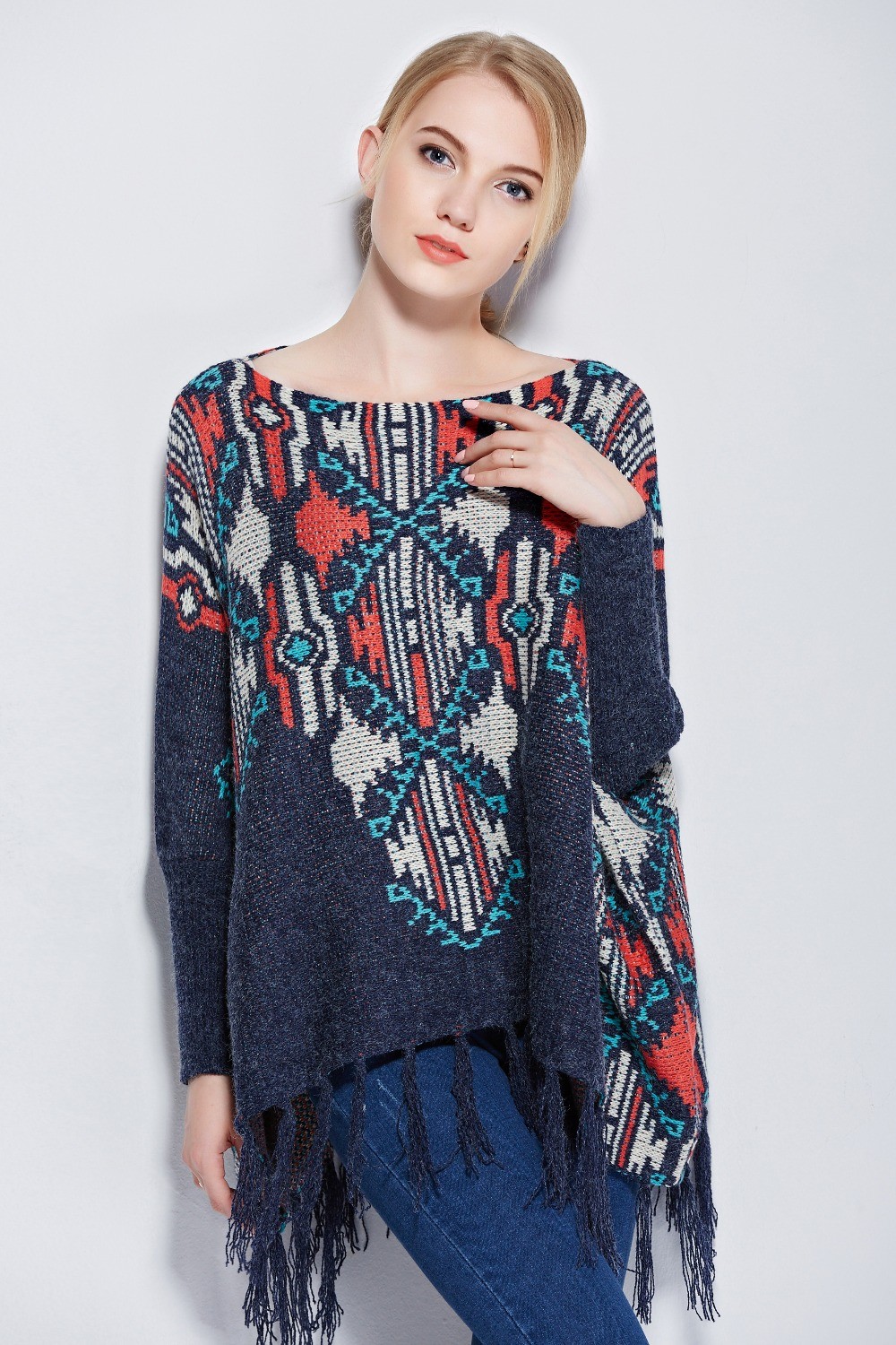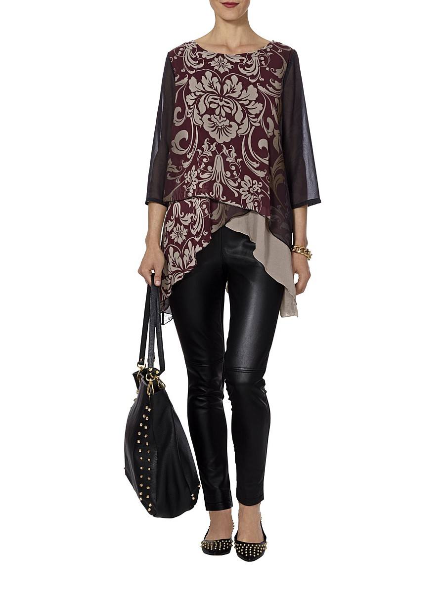 Le style ethnique dans les vêtements d'aujourd'hui est incroyablement populaire et cela ne pouvait qu'affecter les tuniques. La chose la plus pertinente sera décorée avec des motifs complexes, des motifs indiens, une manche moelleuse ou un col. Vous pouvez porter de telles tuniques avec un jean moulant ou un pantalon ample. De plus, vous pouvez utiliser plusieurs gros bracelets.
