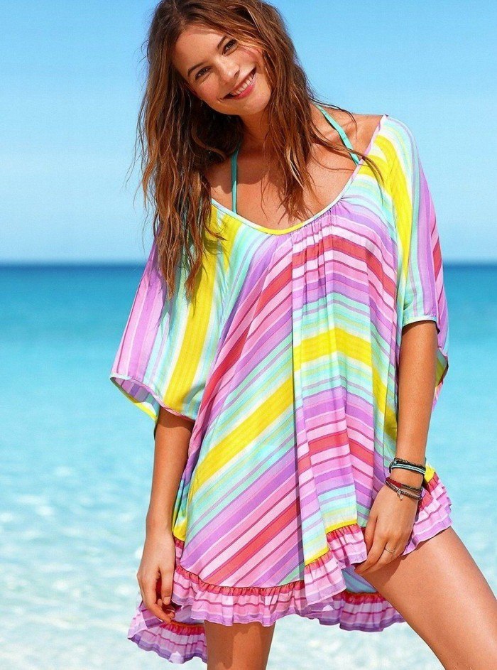 Les tuniques dans la version de plage cette année sont présentées dans des couleurs modérées de couleur olive, gris, blanc, bouleau, mais ne doivent pas non plus être complètement transparentes et fermées. Cette année, les modèles les plus populaires de tissu aérien imitant une manche longue. Pendant la saison printemps-été, il est très facile aux femmes à la mode de se faire la garde-robe de croisière la plus élégante.