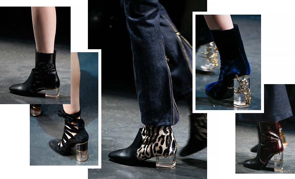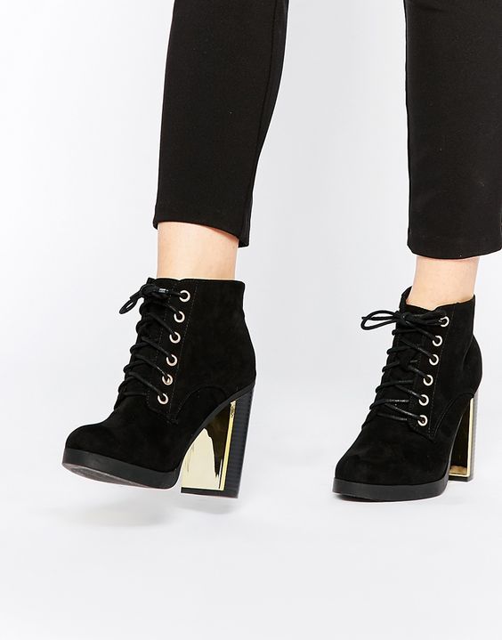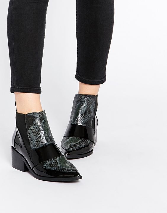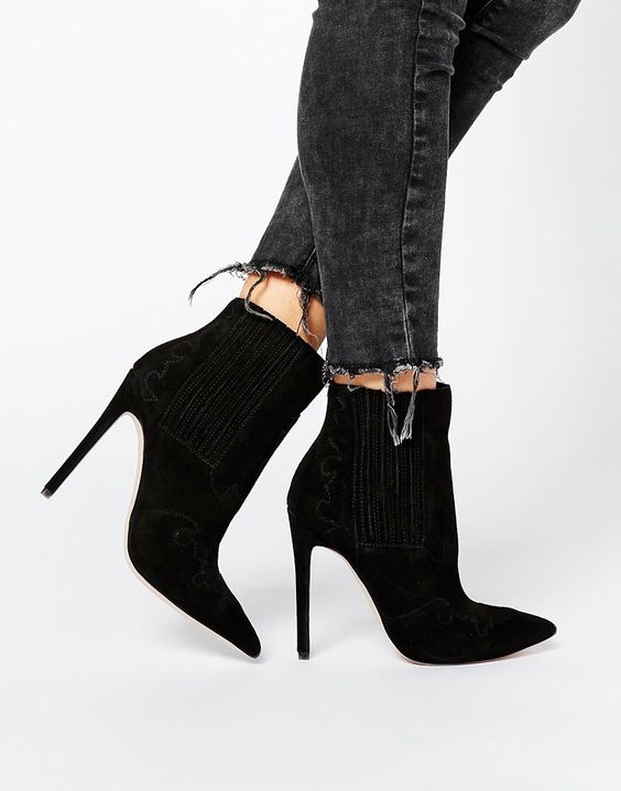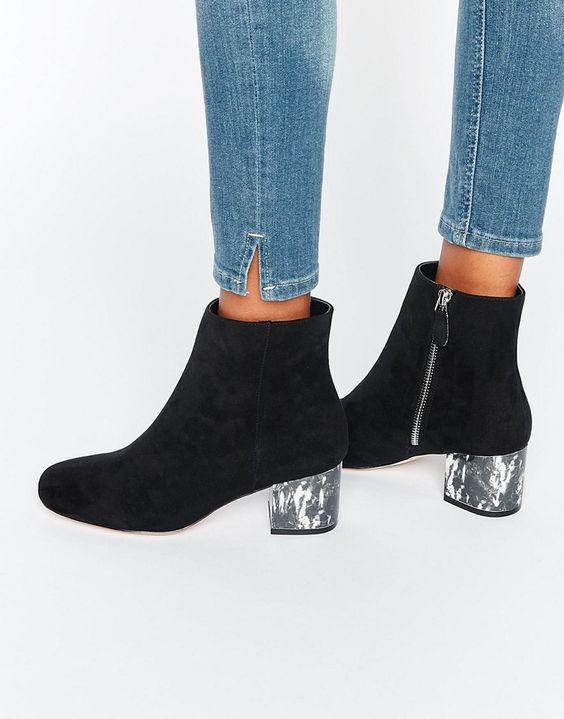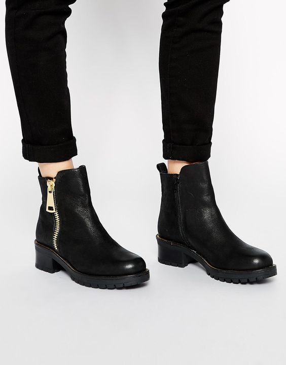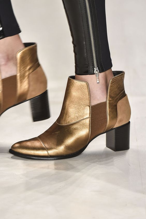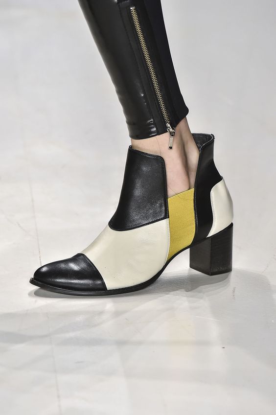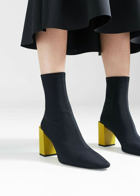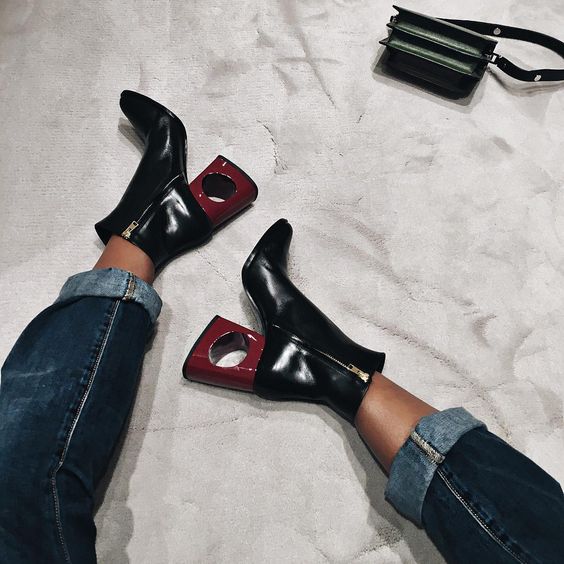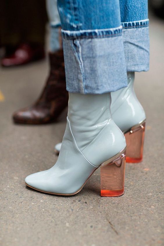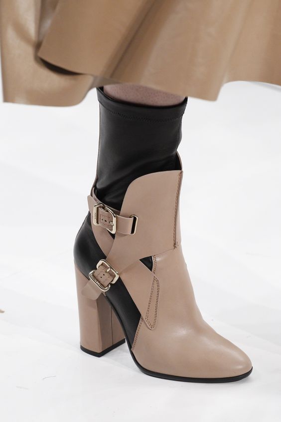 En ce qui concerne les options de combinaison, les stylistes recommandent de combiner des jupes et des robes avec des bottes plus grossières. Dans le même temps, les pantalons ou les jeans sont mieux combinés avec des chaussures élégantes à talons.