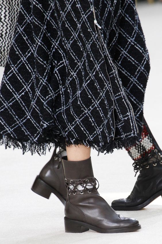 Encore une fois, les chaussures avec laçage sont devenues pertinentes. De plus, peu importe dans quel style ils seront: classique ou armée. Il semble toujours très attrayant.