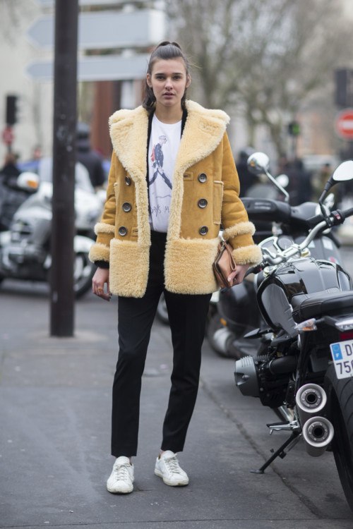 Une des places d’honneur est allée au manteau en peau de mouton. Le modèle "aviator" il n'y a pas si longtemps ne se retrouvait que dans la garde-robe masculine et était recherché par les pilotes. Les principales caractéristiques distinctives sont un col en V et un large col avec revers. Ce sont généralement des modèles en cuir épais ou en daim. La coupe classique prévoit la présence obligatoire de fermetures à glissière, de sangles aux poignets et aux épaules, de rayures et de poches. Maintenant, les stylistes n'ont laissé que les classiques de la coupe, la fermeture à glissière a été décalée sur le côté et ils décorent souvent les poignets avec de la fourrure, ce qui ajoute des notes féminines à un style aussi inhabituel et un look très élégant.