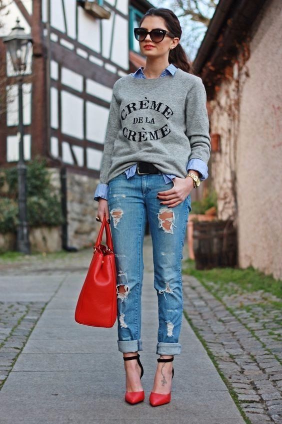 Les jeans sont une des choses indispensables dans la garde-robe des femmes. Après tout, avec l'aide de cette chose, chaque beauté sera capable de se créer une nouvelle image. Le jean est une chose très pratique et confortable qui peut être utilisé à la fois pour un look de tous les jours, pour des promenades en soirée et, bien sûr, pour aller au travail. Dans l'ensemble, vous devez choisir le bon sommet pour eux. Les filles extraordinaires devraient préférer les t-shirts à manches retroussées ou les t-shirts à bretelles fines. Vous pouvez également ajouter un sweat-shirt, un pull, une veste, une veste allongée ou un cardigan à un jean.