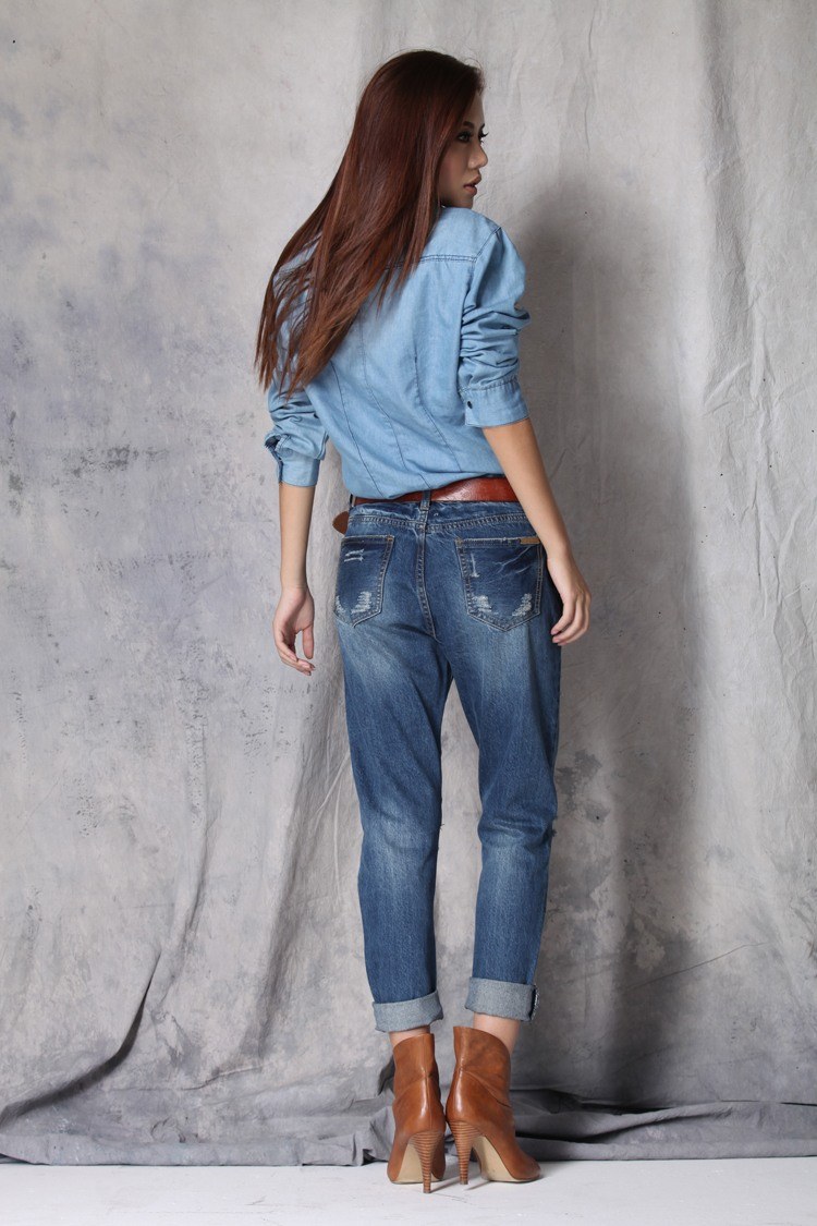 Ce style est l'une des tendances les plus populaires. Les pantalons de ce style ont une longueur raccourcie ou classique, une coupe moyenne ou une taille haute. Une variante unique des modèles permet aux femmes de choisir un pantalon quelle que soit leur catégorie d'âge. Une large coupe de jeans n'est ni gainée ni légèrement rentrée. De nos jours, les pantalons à bord coupé sont considérés comme à la mode.