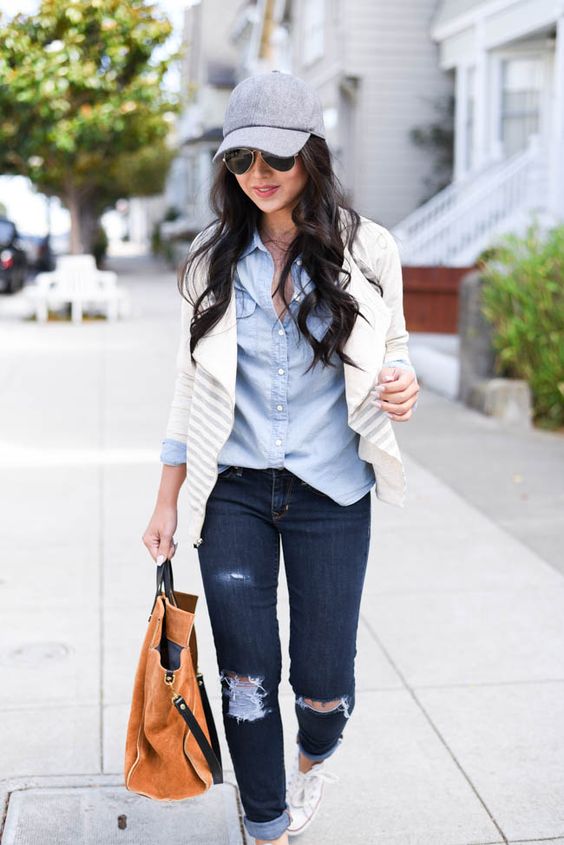 Nous devrions également mentionner les casquettes en jean.Ils ne seront pas aussi populaires en 2026, mais ce n'est pas une raison pour abandonner les expériences de mode. Si vous aimez cette option, il est temps de montrer votre vision du style. De plus, nous vous recommandons de créer un arc mono en denim. Après tout, il a l'air vraiment cool et moderne.