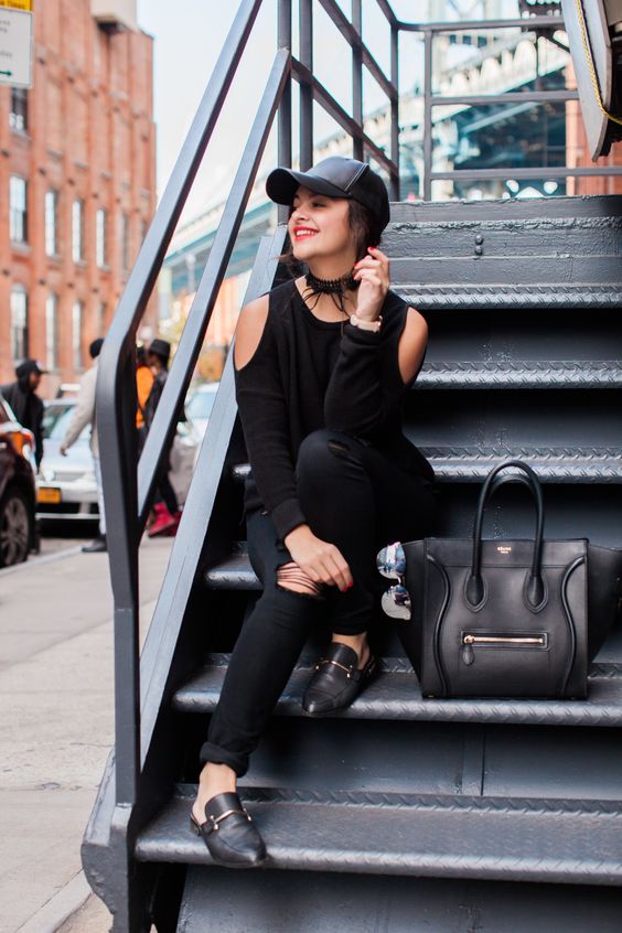 Nous proposons d'essayer quelque chose de nouveau et d'original. Par exemple, la combinaison d'un manteau de fourrure avec une casquette est assez audacieuse, mais néanmoins, elle est très belle. L'essentiel est de choisir le bon accessoire. En outre, une casquette ou une casquette de baseball conviendra à l'image avec une robe et une veste en jean ou avec une simple tenue de style décontracté. Cet accessoire a l’air très élégant dans un noeud en denim total. Les représentants du show business le choisissent souvent.