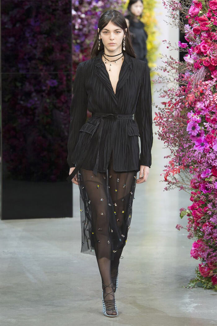 Vous avez probablement déjà réussi à penser à des images trop vulgaires et trop franches? Mais non, ce n'est pas. L'année dernière, tous les créateurs de mode ont déclaré ne pas accueillir de telles images sur leurs modèles. De nombreuses maisons de couture ont commencé à proposer des images très belles et élégantes, combinant simplement des matériaux denses à une texture transparente. En 2026, des jupes en mousseline de soie, en dentelle et en organza clair sont apparues. Les jupes en cuir et perforation sont également très populaires. Le plus souvent, ces jupes sont associées à des leggings ou à de simples collants serrés. Si vous voulez être au sommet de la tendance, faites attention à une jupe noire transparente. C'est une telle jupe qui crée un certain mystère et une sexualité restreinte.