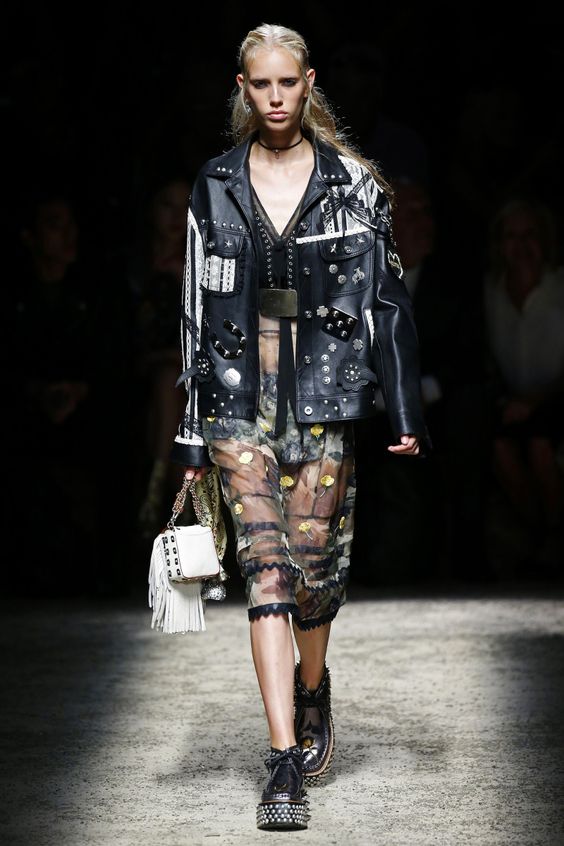 Par exemple, la célèbre veste noire est à nouveau au sommet de sa popularité. Une caractéristique de ce produit est le cuir souple, grâce à quoi la veste est très agréable à porter. En outre, divers rivets, des serrures sont souvent présents sur celui-ci. Ce sont ces détails qui donnent au produit une touche de brutalité.