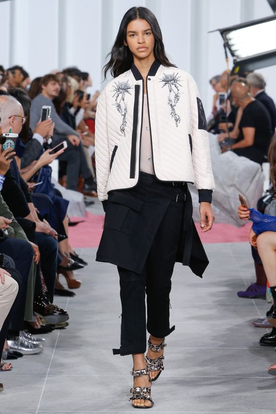 En ce qui concerne les éléments de décoration, ils sont assez nombreux. Les designers décorent avec audace les vestes modernes avec des franges, des inserts en cuir inhabituels, des rivets et des boutons stylés. Il est impossible de ne pas mentionner que la tendance sera à nouveau de la broderie. On peut le voir non seulement sur les vestes, mais aussi sur les blousons bombardiers et même les coupe-vent. C'est très féminin.