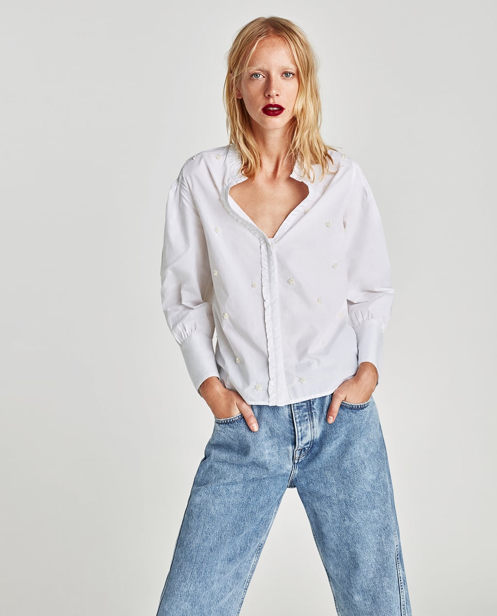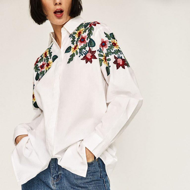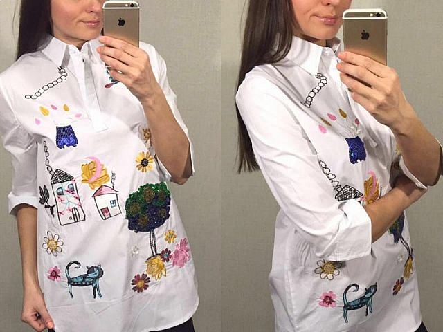 La broderie est un moyen original de décorer une chemise simple et même stricte, ce qui rendra l'image plus facile et plus romantique. Idéalement, ce modèle ira avec un jean ou une jupe.