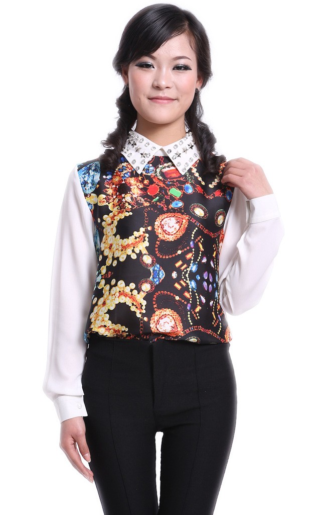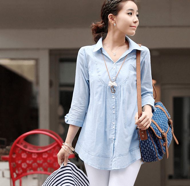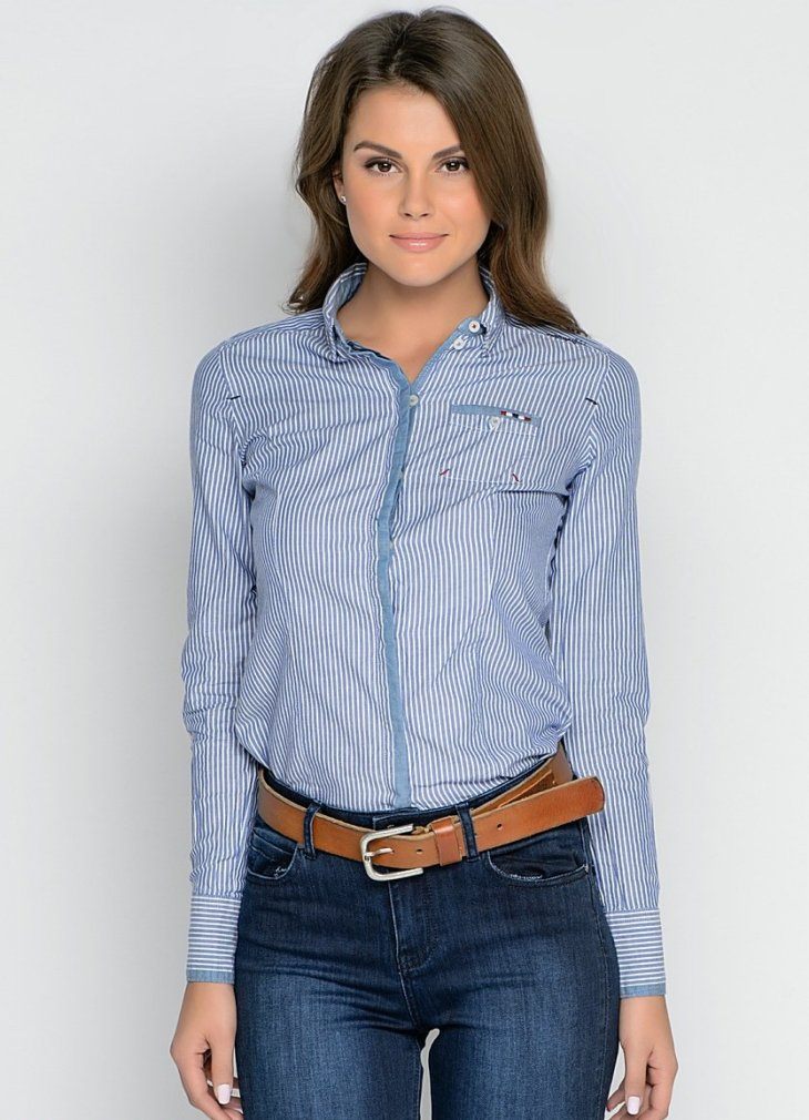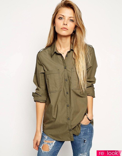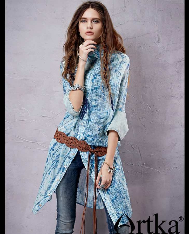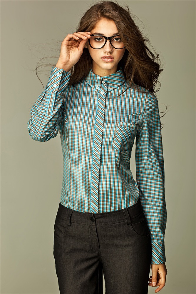 Les caractéristiques distinctives de ce modèle sont le col classique et la coupe droite. Le style unisexe était incroyablement populaire dans les années 70 du siècle dernier. Et puis il est de nouveau retourné sur les podiums mondiaux. À l’origine, ces chemises se porteraient avec une jupe droite ou un pantalon évasé.
