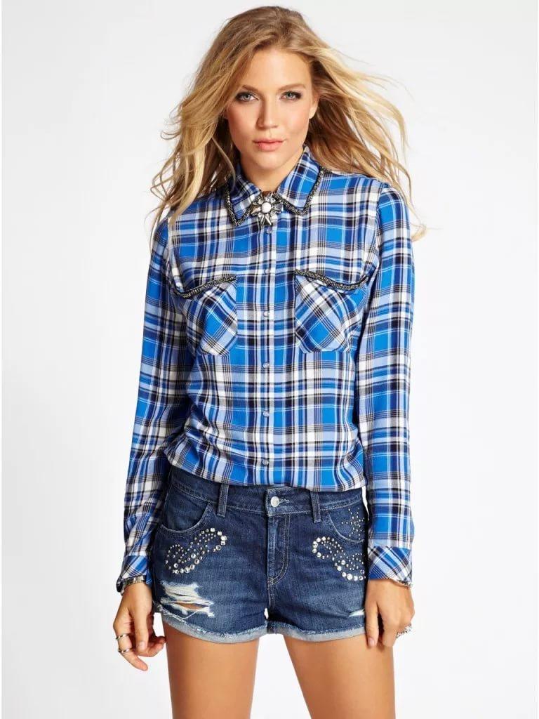 Une impression de chèque sera particulièrement populaire en 2026. Initialement, les chemises de cow-boy pour hommes étaient décorées d'une cage. Aujourd'hui, on peut noter que dans les modèles féminins, elle a l'air attrayant et sophistiqué.
