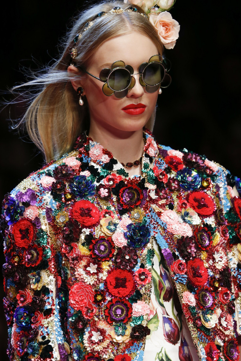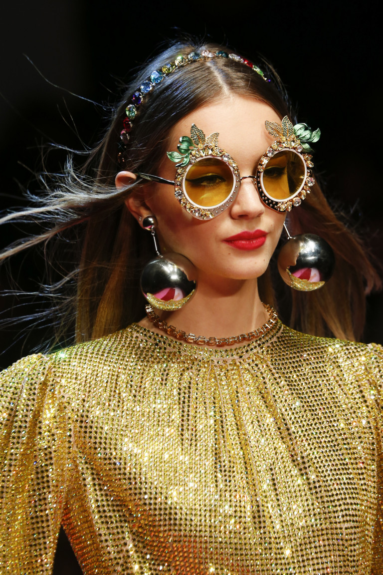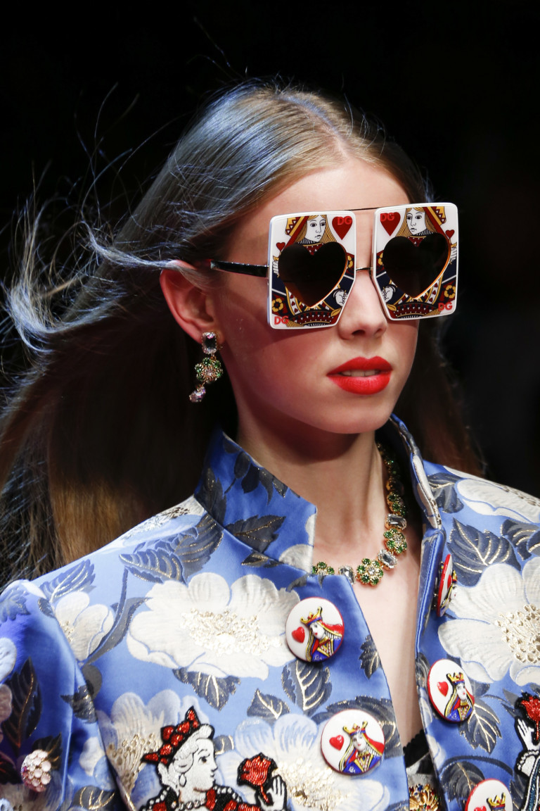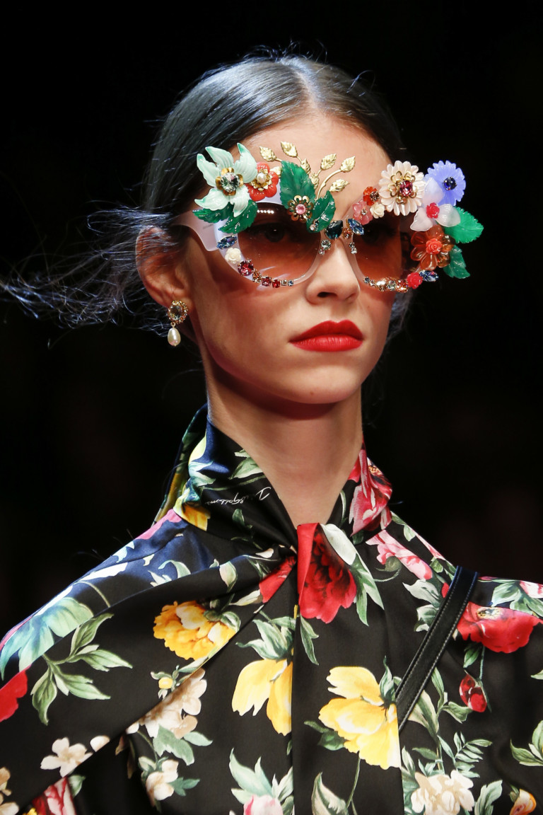 Au printemps, les lunettes de soleil sont également populaires et très demandées, comme en été. Et les lunettes de soleil à la mode de la célèbre marque Dolce & Gabbana sont présentées dans le thème estival, qui rappellera sûrement au début du printemps l'apparition imminente de la saison chaude. Même au printemps, les rayons ultraviolets solaires sont dangereux, il est donc nécessaire de protéger les yeux de leurs effets. Les concepteurs de la marque ont impressionné par leur approche créative pour créer d’intéressants modèles de lunettes de soleil. Les modèles sont très féminins et attrayants. Quel est le cadre sous la forme d'un arrangement de fleurs ou d'un stylo femelle sophistiqué. Auparavant, les stylistes ne recommandaient pas de combiner des lunettes de soleil décorées avec des vêtements accrocheurs, mais Dolce & Gabbana a brisé depuis longtemps les stéréotypes de combinaisons susmentionnés, ce qui prouve bien la photo de lunettes de mode - 2026. Une femme brillante est brillante en tout!