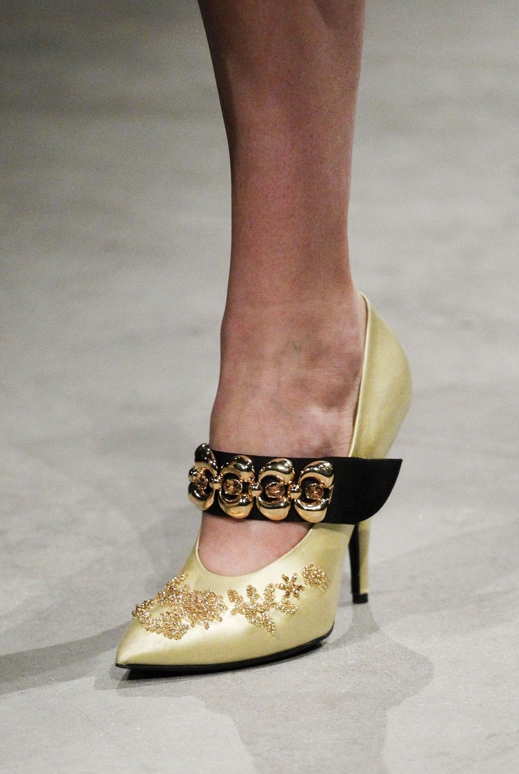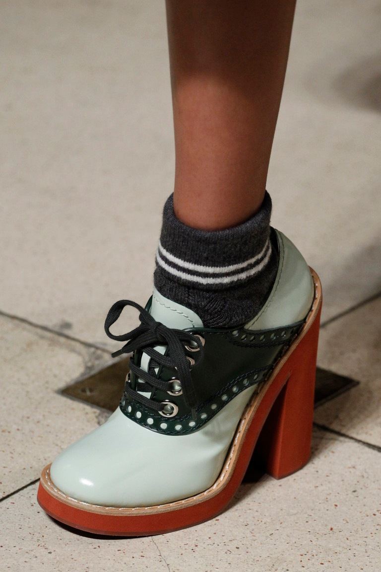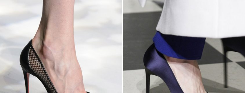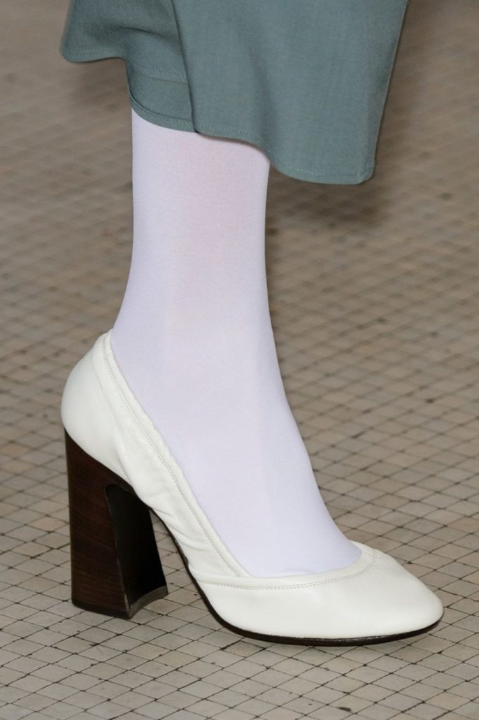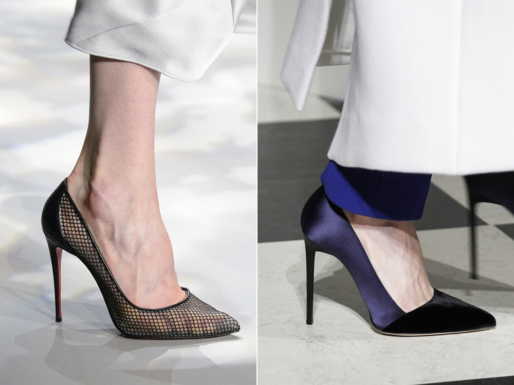 La variété des matériaux utilisés est particulièrement frappante. Sur le podium, on pouvait voir des escarpins en cuir, y compris du cuir verni, du daim et même du velveteen. Beaucoup d'entre eux sont décorés d'arcs, de lanières ou de cravates pouvant souligner avec succès l'élégance des jambes.
