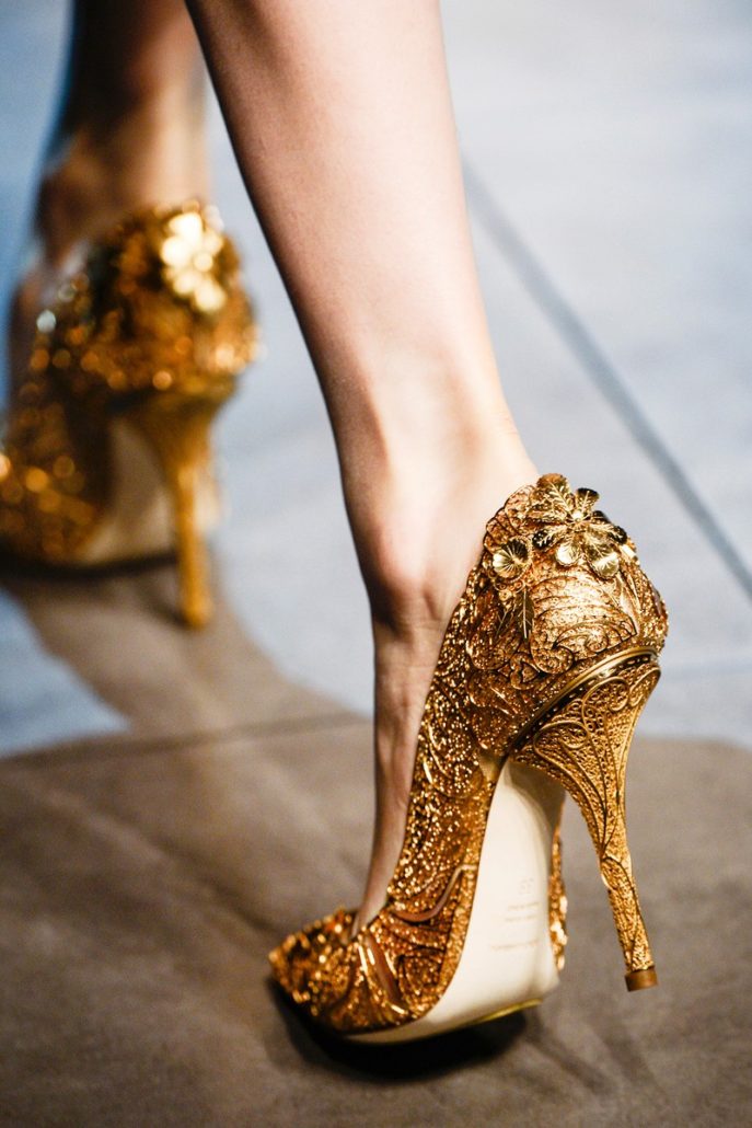 Les chaussures dorées devraient être un succès, qui devrait être combiné avec des choses monophoniques de nuances classiques.