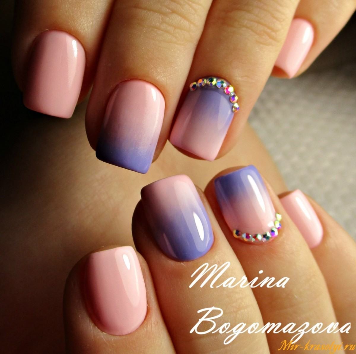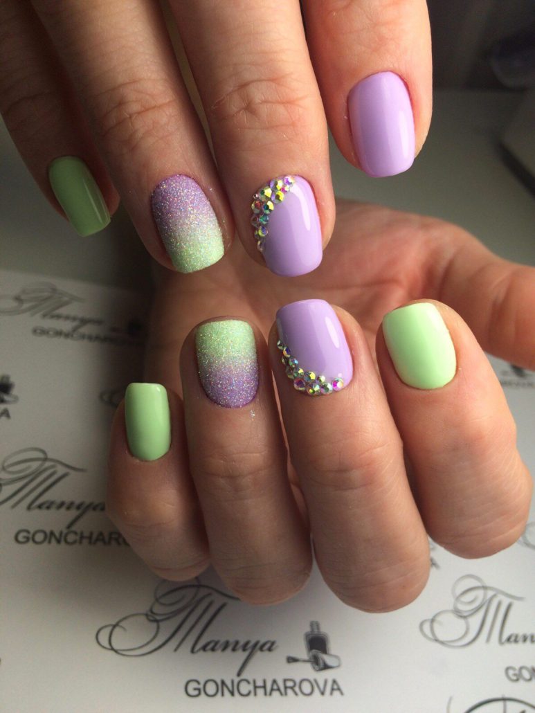 Les strass peuvent être qualifiés de décor universels, car ils ont la même apparence sur toute la longueur du clou. Ils peuvent être disposés selon n'importe quel motif ou appliqués au hasard sur la plaque à ongles. Le placer multicolore a l'air original.