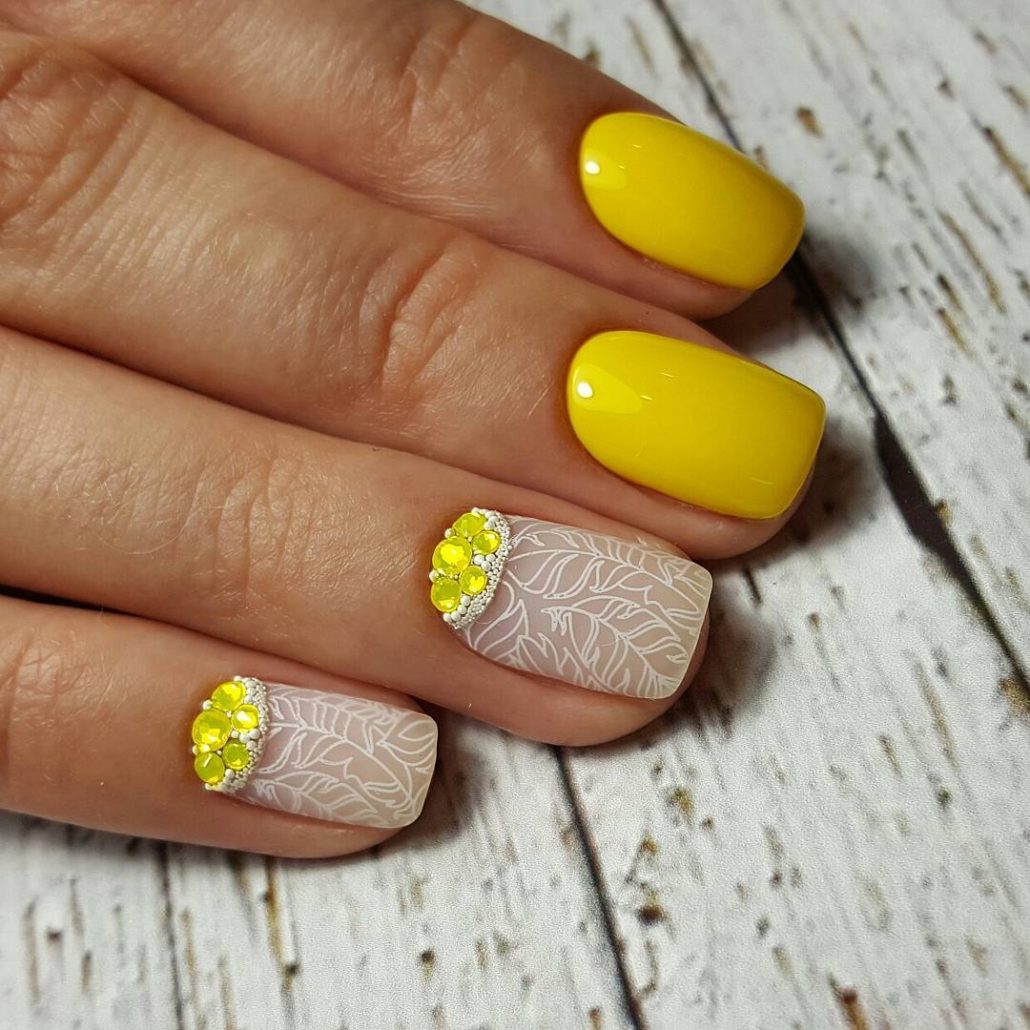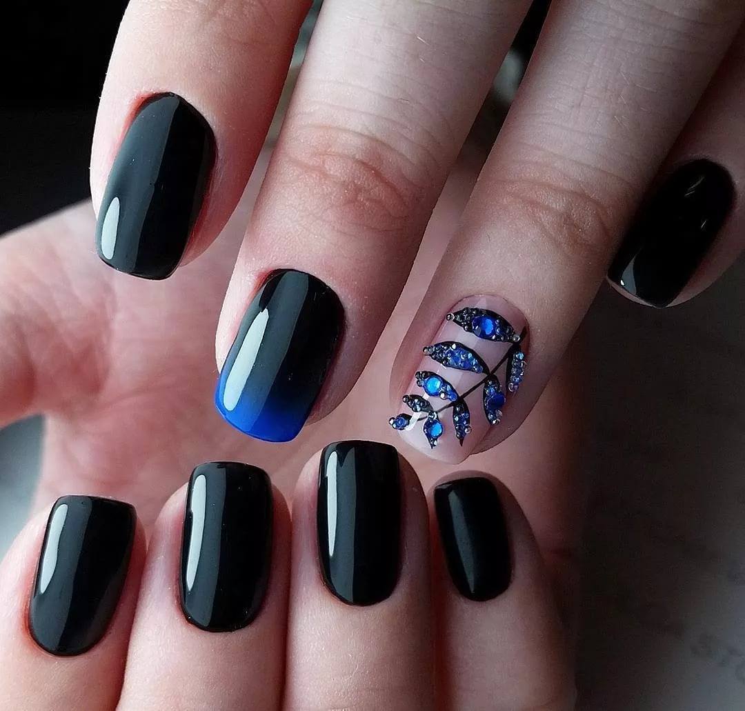 Vous pouvez ajouter des strass à n'importe quel motif (veste, ombre, manucure monochrome, etc.). Il est important de ne pas oublier le sens des proportions, sinon vous risquez de vous faire complètement mal.