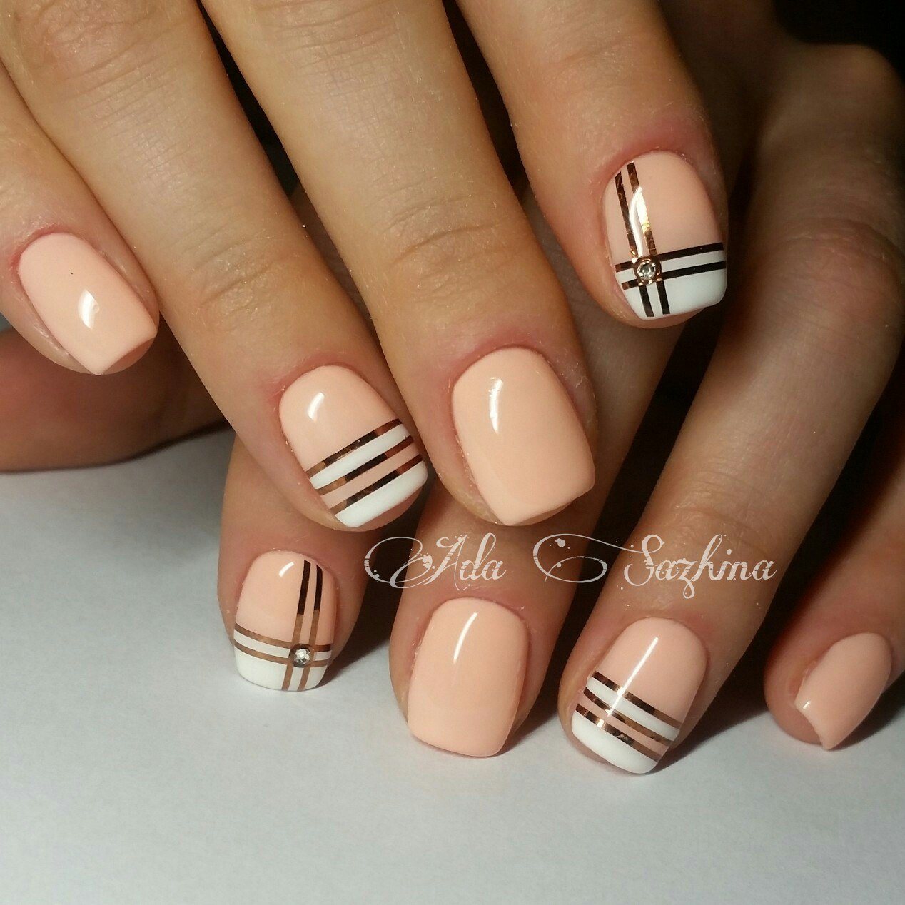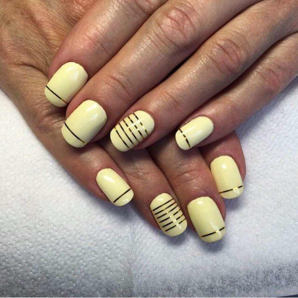 Quels modèles peuvent être appliqués? Absolument tout! Pour commencer, vous pouvez expérimenter avec des rayures et des lignes chaotiques. Si cela vous convient, décorez les ongles avec des triangles, des losanges, etc.