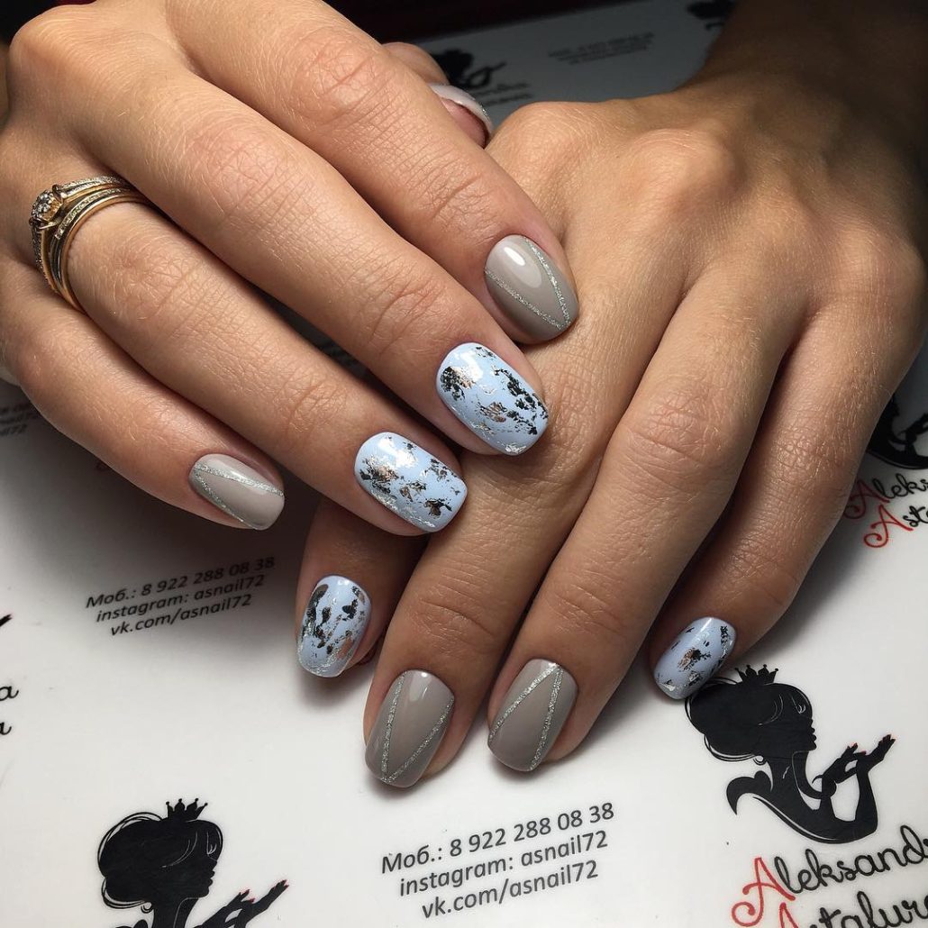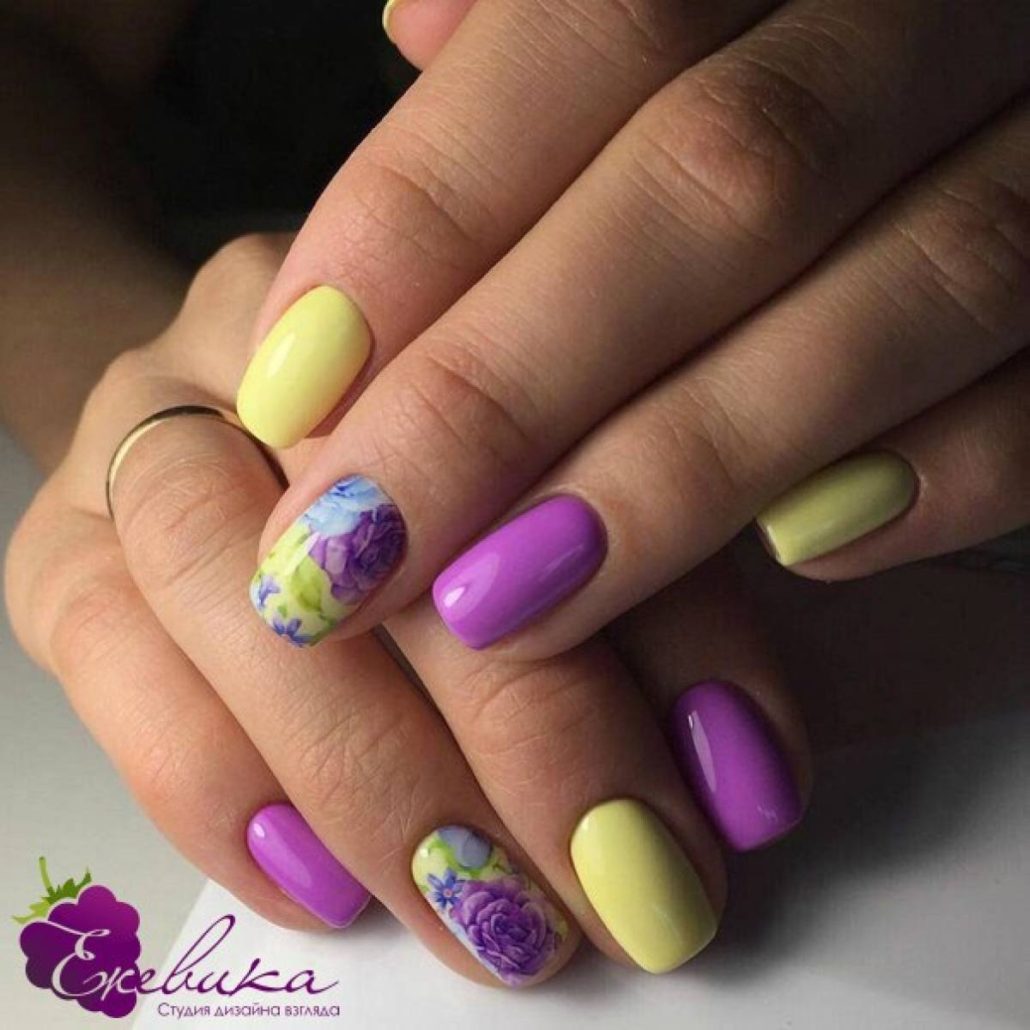 La double manucure semble originale, où un ou deux ongles sont peints d’une couleur et le reste d’une autre. Dans ce cas, les couleurs peuvent appartenir à une gamme ou être contrastées.