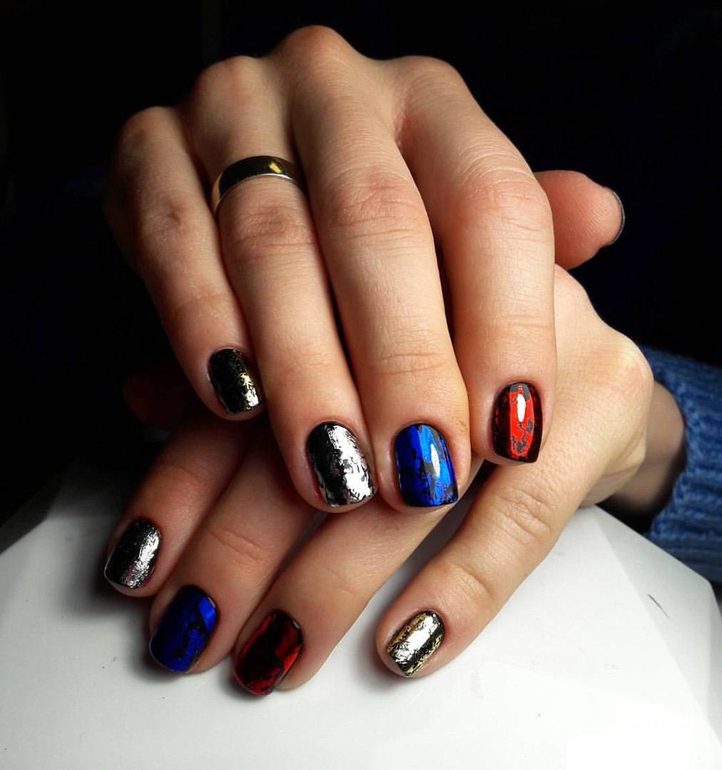 En 2026, les Français seront non standard. Pour lui, vous pouvez choisir des couleurs contrastées de l'ongle et des sourires, mélanger les textures, les compléter avec des dessins et autres décors.