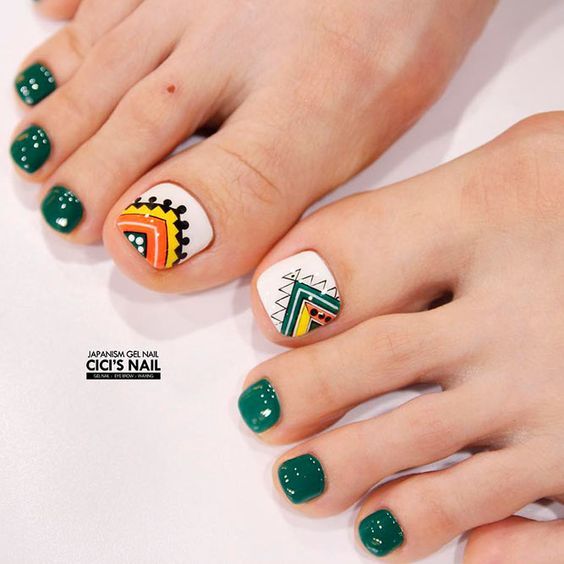 Le thème marin, les motifs et les images abstraites ne cessent d'être en demande. Pour les jeunes filles, il est conseillé aux maîtres de pédicure de choisir un motif avec des fruits tropicaux, des coquillages, des libellules et le soleil.