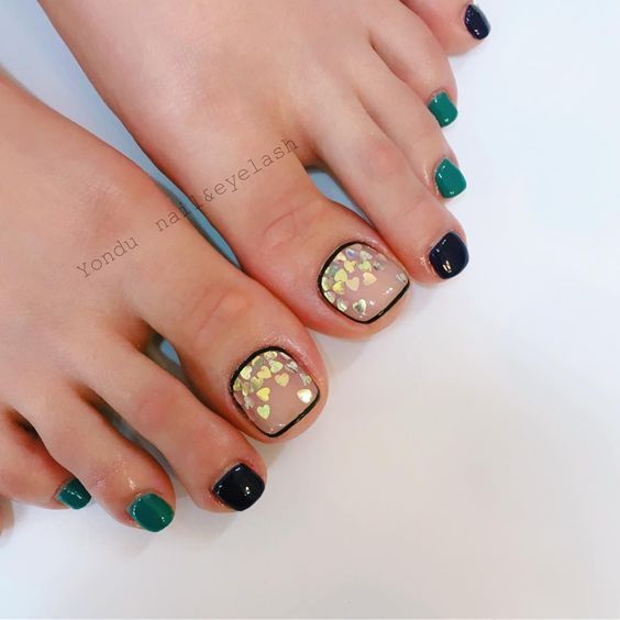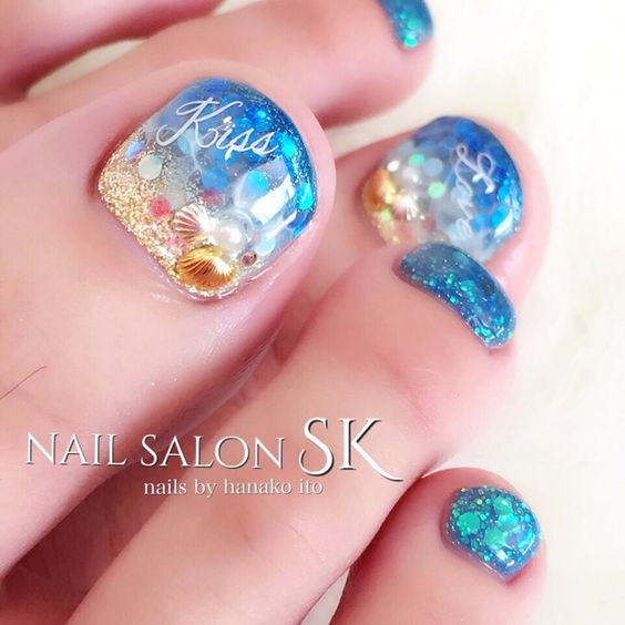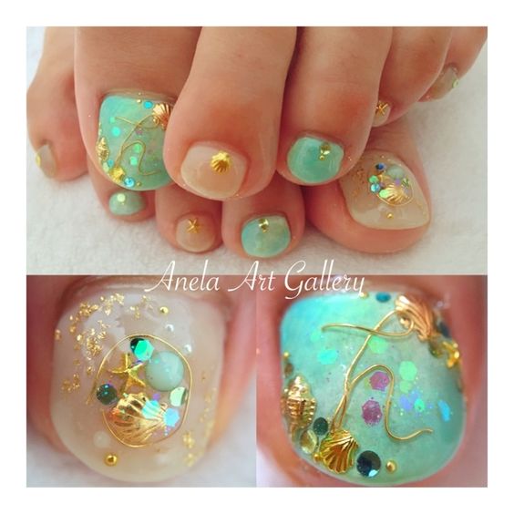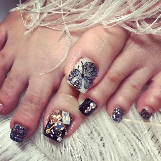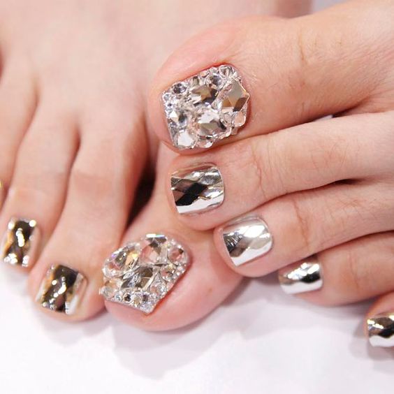 Des idées à la mode pour appliquer des éléments brillants dans une pédicure