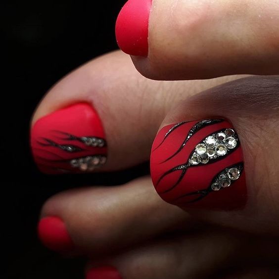 Les revêtements de vernis rouge, utilisés pour effectuer différentes opérations de pédicure, sont toujours en demande. La gomme laque mate et les vernis gel en rouge sont élégants et impressionnants. Ils peuvent être combinés avec une texture brillante. En utilisant la couleur rouge sur les ongles des pieds, chaque femme peut facilement se différencier non seulement par l'originalité et la variété de son pédicure, mais aussi pour souligner la féminité, l'harmonie et la détermination à son image.