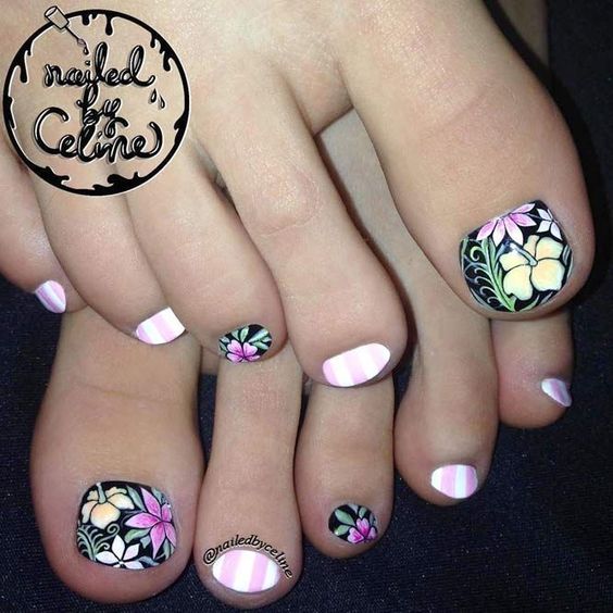 Pendant la saison chaude de 2026, les manucures conseillent de rendre les pédicures plus efficaces et plus variées. Avec l'aide d'un pédicure accrocheur, il est très simple de faire attention aux jambes fines de son propriétaire. Bien sûr, le thème floristique sera le style le plus populaire cette année. C'est une image de fleurs envoûtantes encadrées par un feuillage vert saturé. Avec une telle pédicure, une femme pourra mettre en valeur sa beauté intérieure, son harmonie et bien sûr son sens du style. En faisant appel à votre imagination, vous pouvez facilement créer pour vous-même un pédicure exclusif et étonnant.
